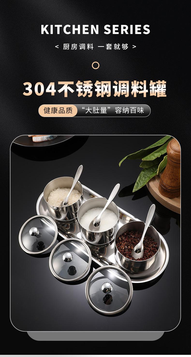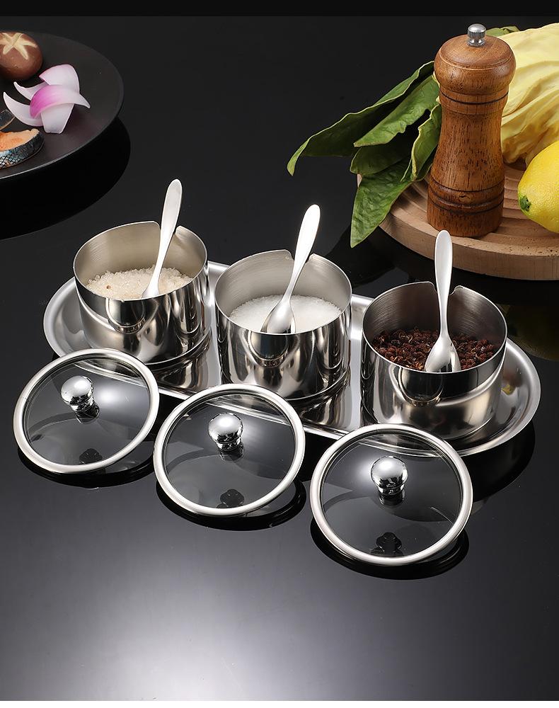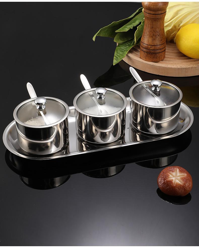 3 full sets 304【3 straight seasoning jars+3 spoons+tray 1.2 thick】