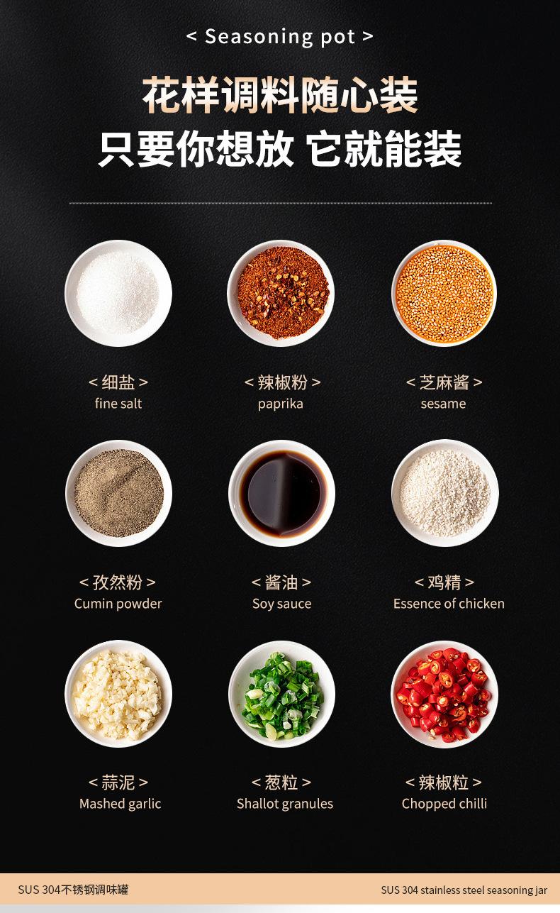 Juego de Cajas para Condimentos de Acero Inoxidable 304 de Alta Gama para el Hogar, Combinación de Frascos para Sazonar Sal y Condimentos, Botellas y Frascos para Almacenamiento