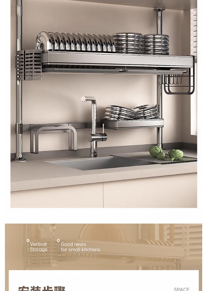 Estante de almacenamiento de cocina de arriba a abajo, escurridor para fregadero, estante escurridor, fregadero para lavar platos, encima del fregadero para guardar platos