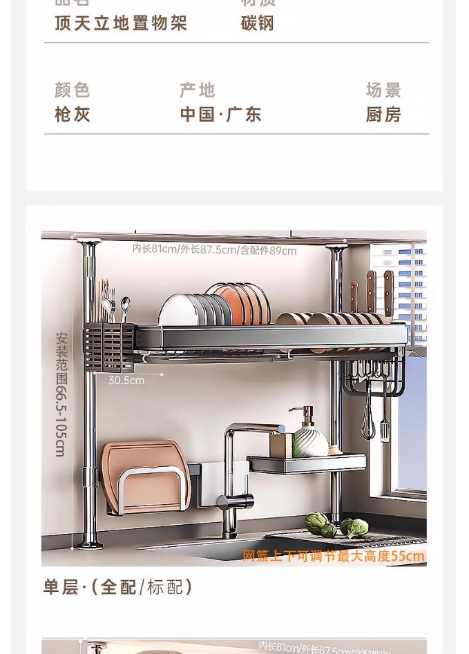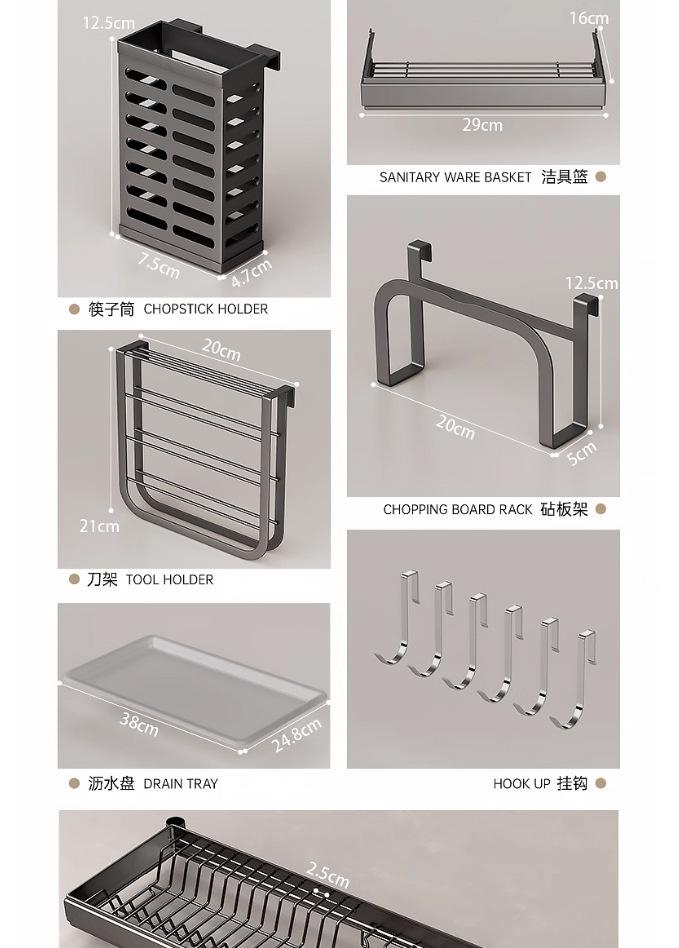 【Gun Gray】78CM Single Layer Standard, 【Gunmetal】78CM Single-Layer Knife Rack+Chopping Board Rack+Chopstick Hol...
