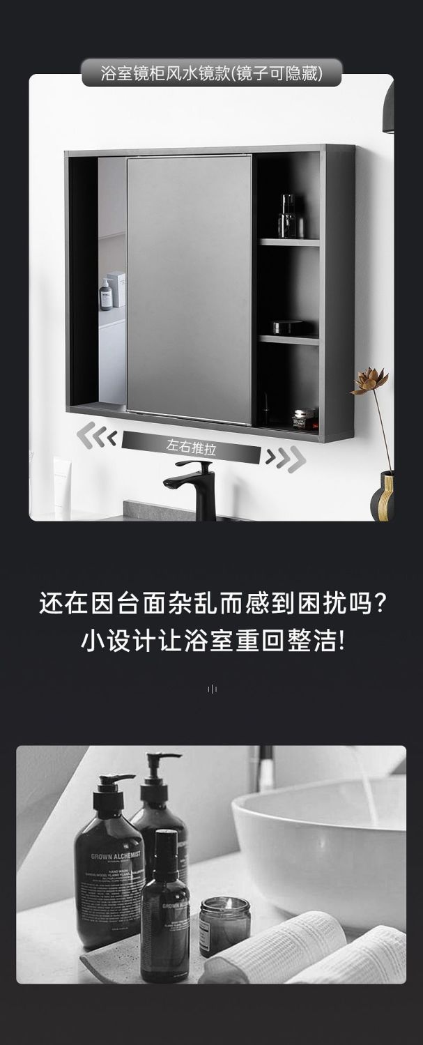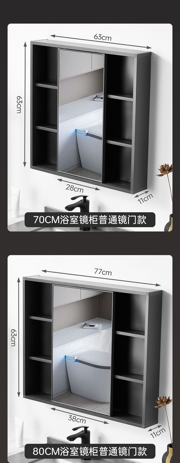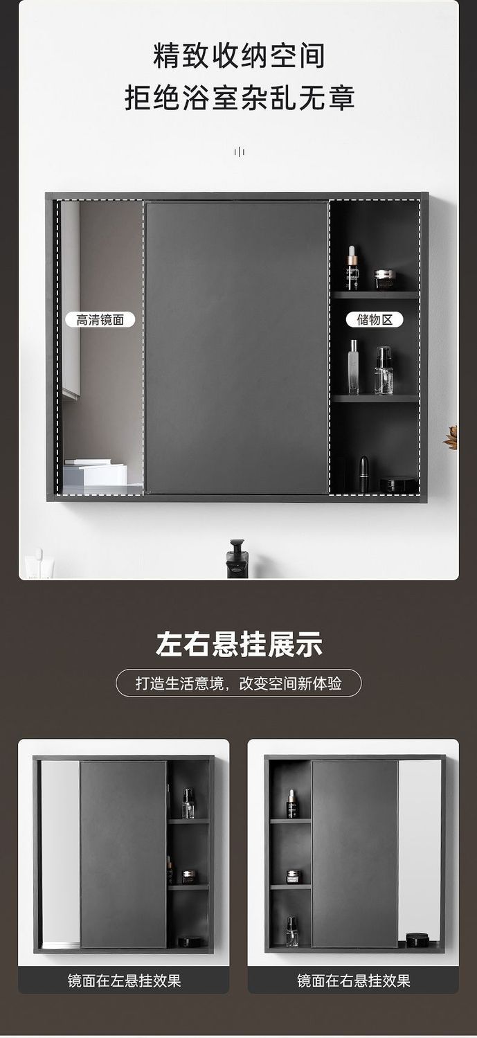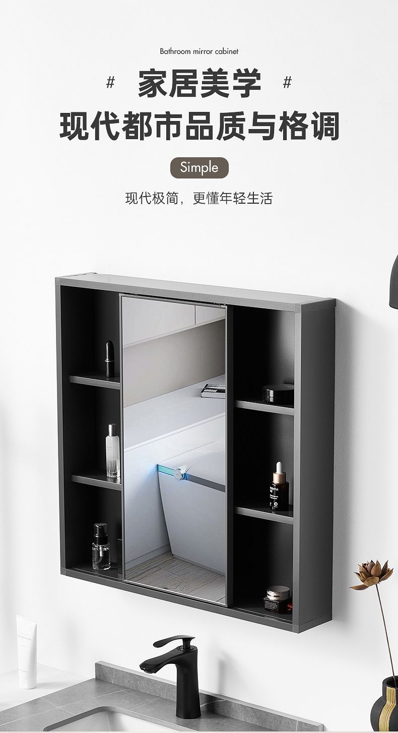Nuevo Espejo Simple de Inodoro Oculto Tamaño Pequeño Puerta de Espejo Push-Pull Espacio Aluminio Ligero Gabinete con Espejo para Baño Montado en la Pared Espejo Feng Shui