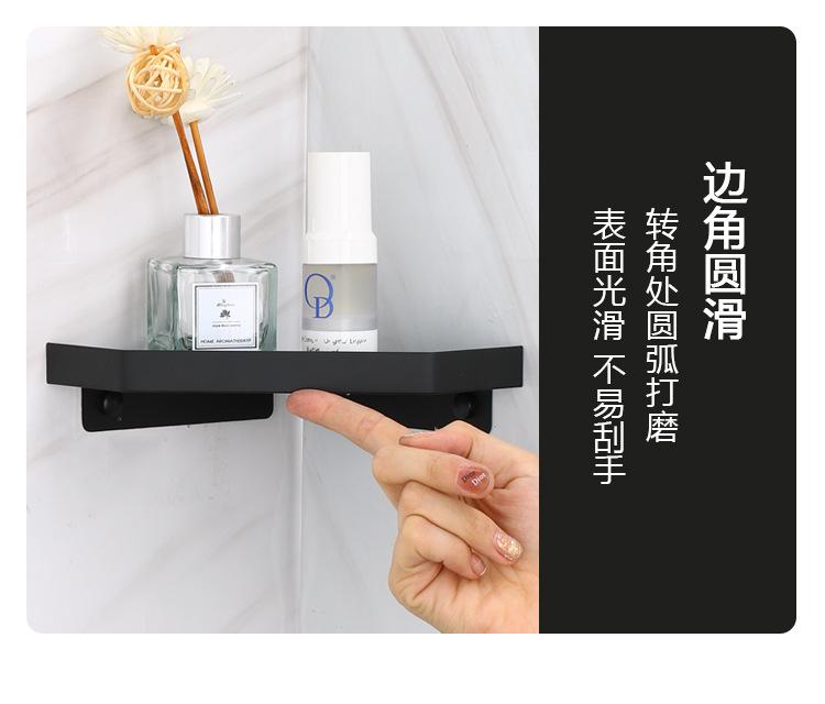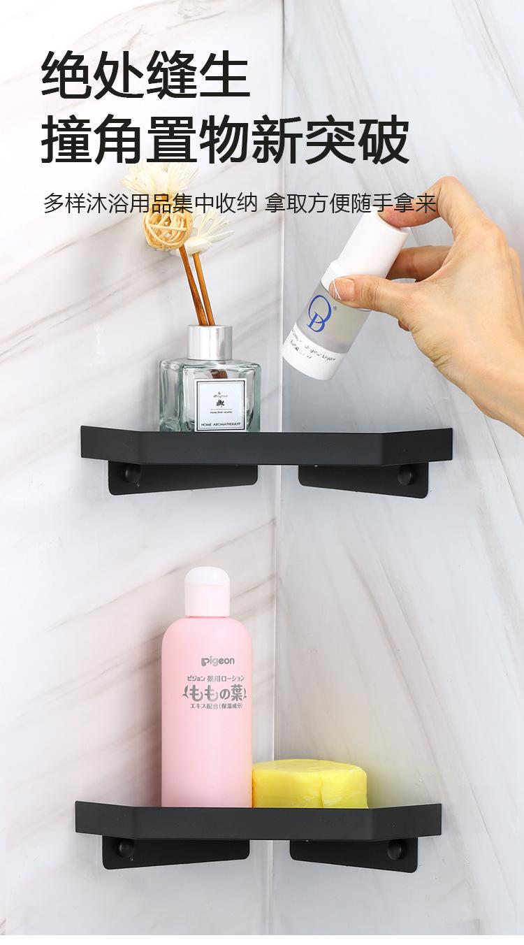 Cesta triangular negra para baño tamaño pequeño estante de almacenamiento para ducha esquina sin perforaciones cuarto de ducha baño montado en la pared