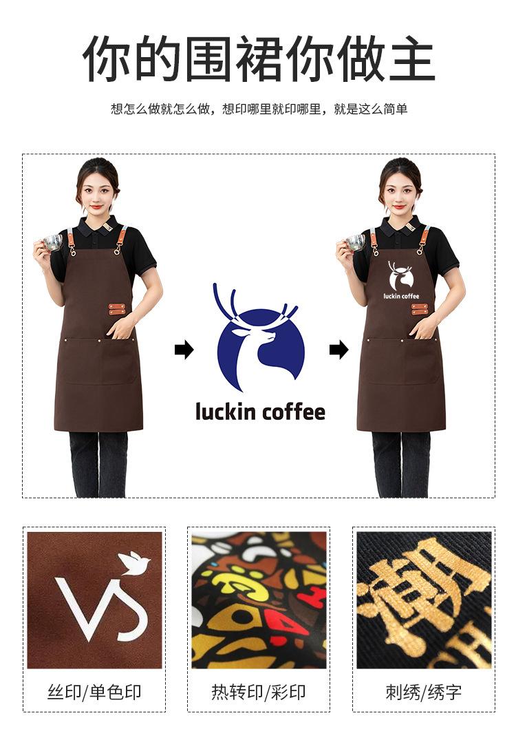 Delantal de Lona Popular con Estampado de Logotipo Catering Ropa de Trabajo para Hombre Impermeable a Prueba de Aceite Té con Leche Café Florería Especial para Mujer