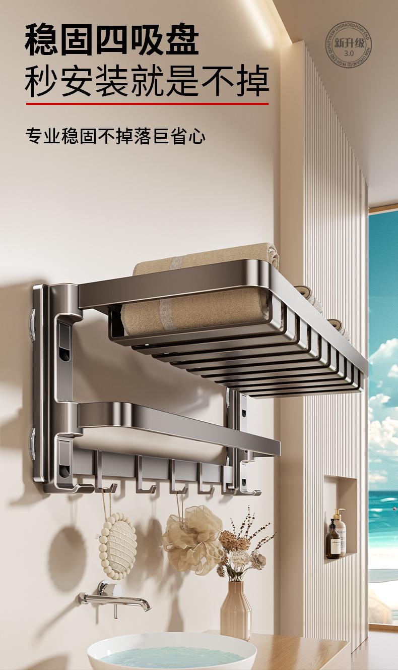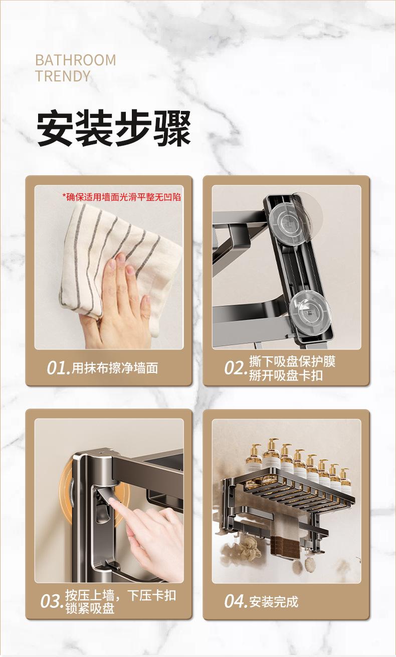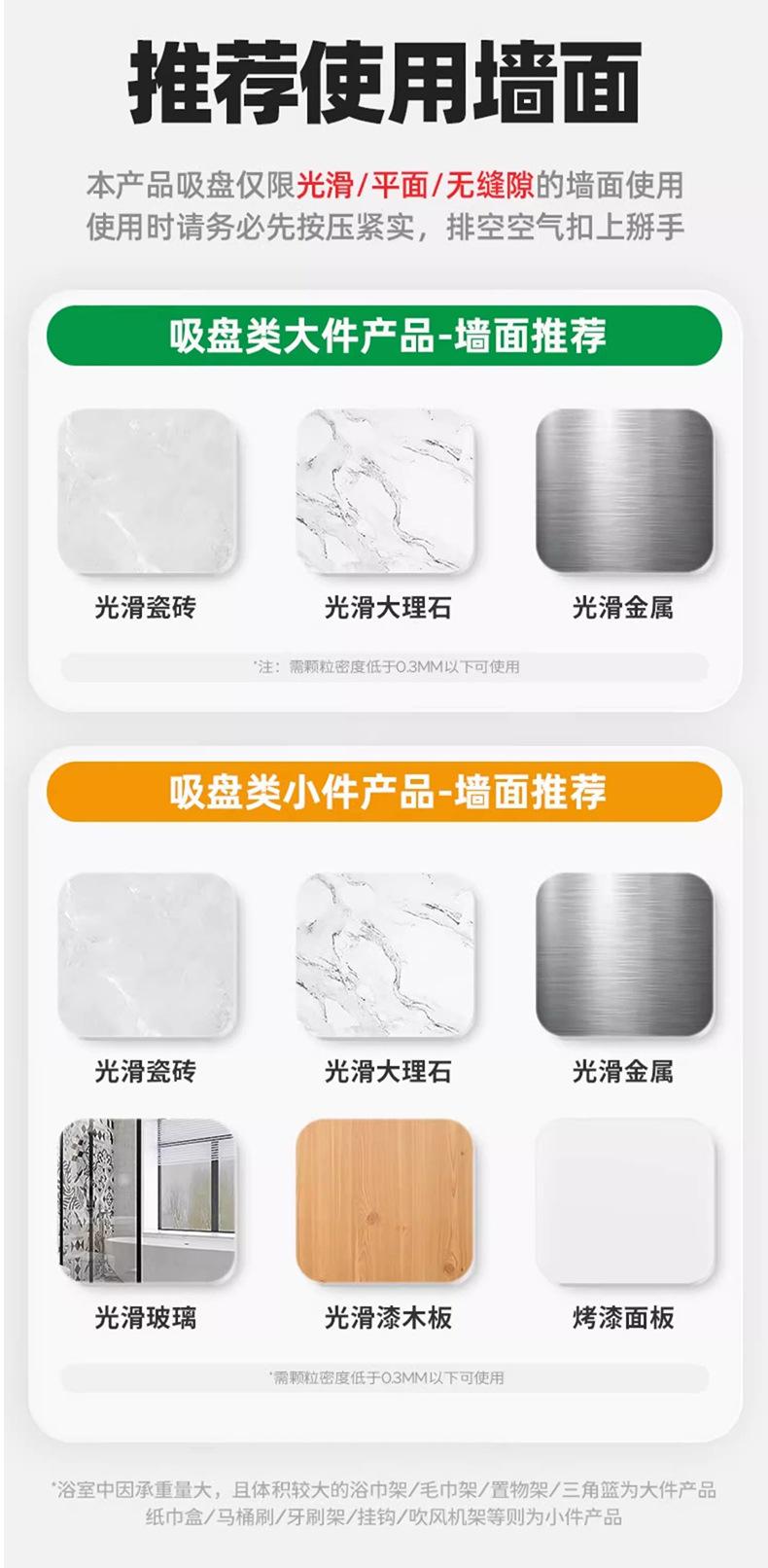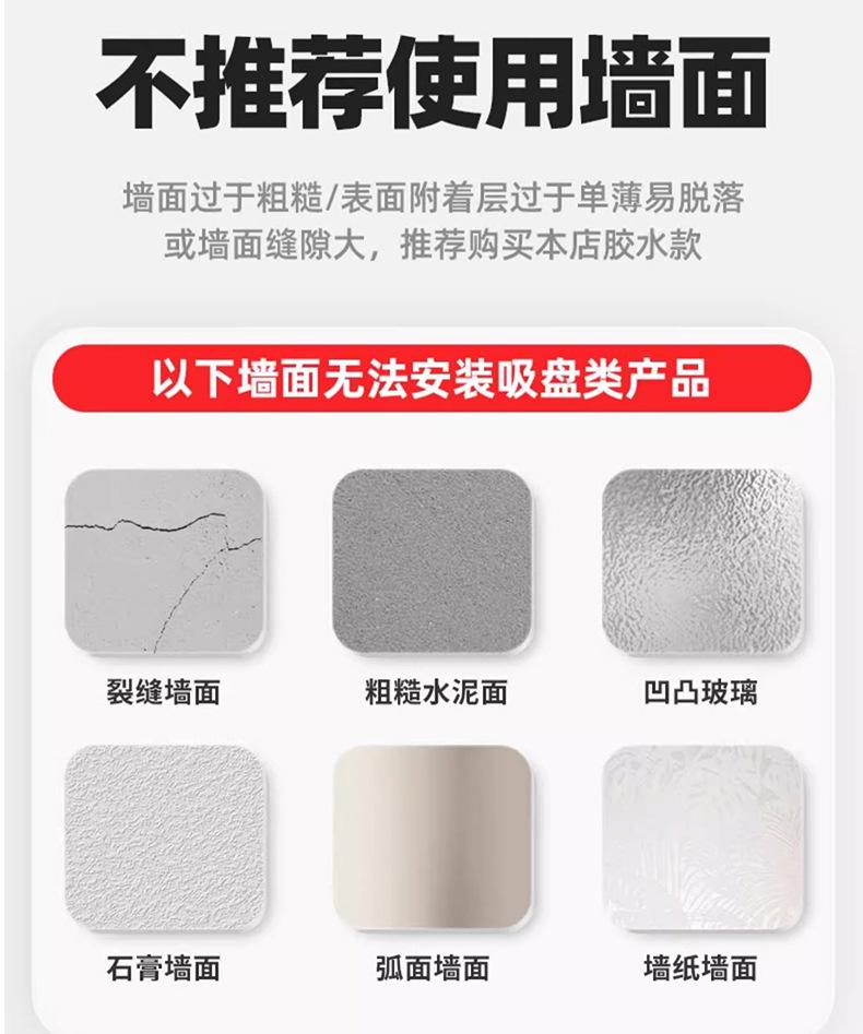 (4) Después de que la ventosa esté adherida a la pared, presiónela firmemente durante 10 segundos para expulsar el aire, luego baje el interruptor de la ventosa para usarla.