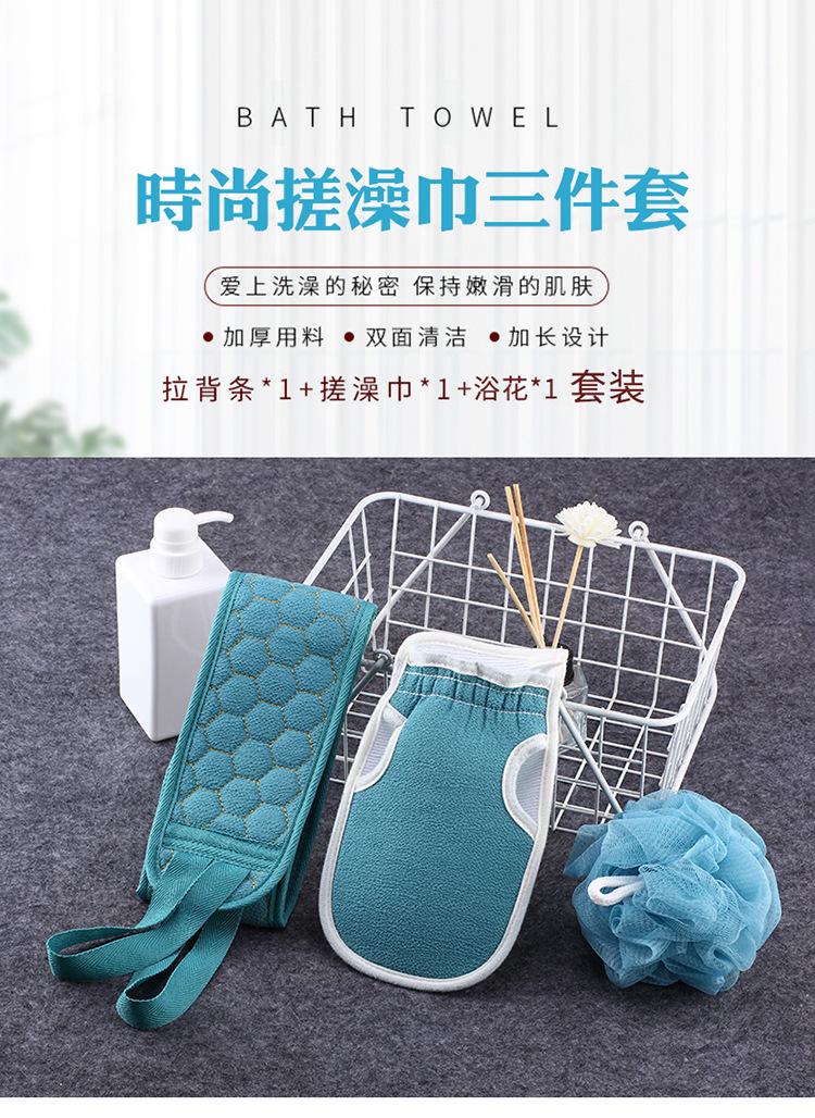 Compra Juego de tres toallas de baño para frotar, artefacto de baño, bola de baño descontaminante de barro espeso para frotar, juego combinado, tira para el respaldo, toalla larga para frotar el respaldo al por mayor en Joom.pro