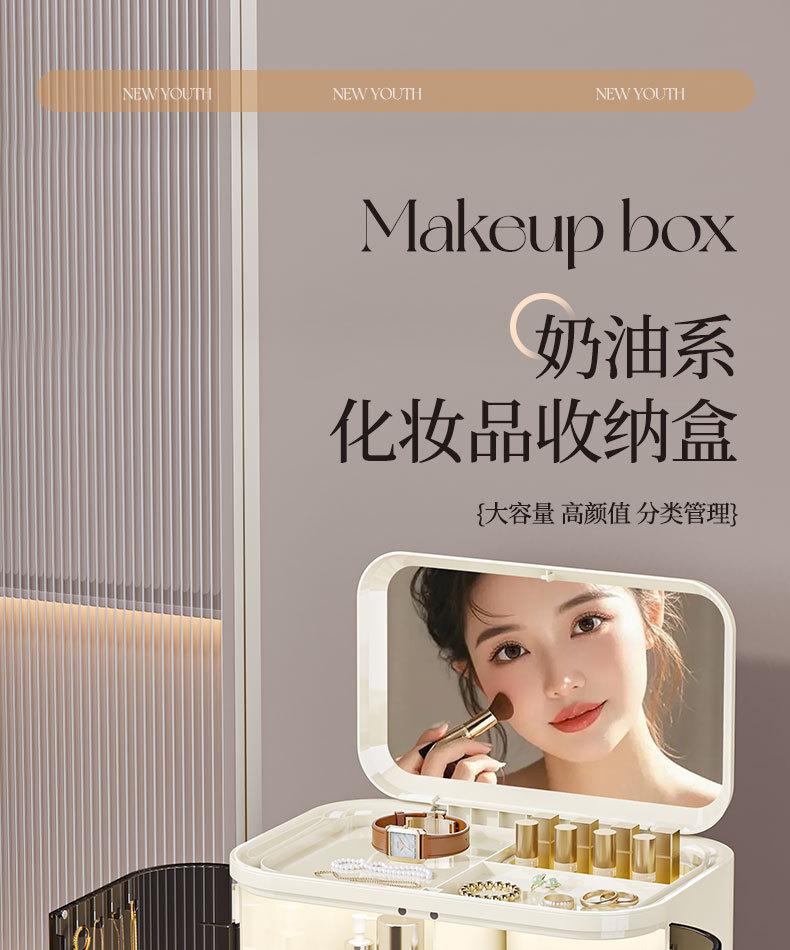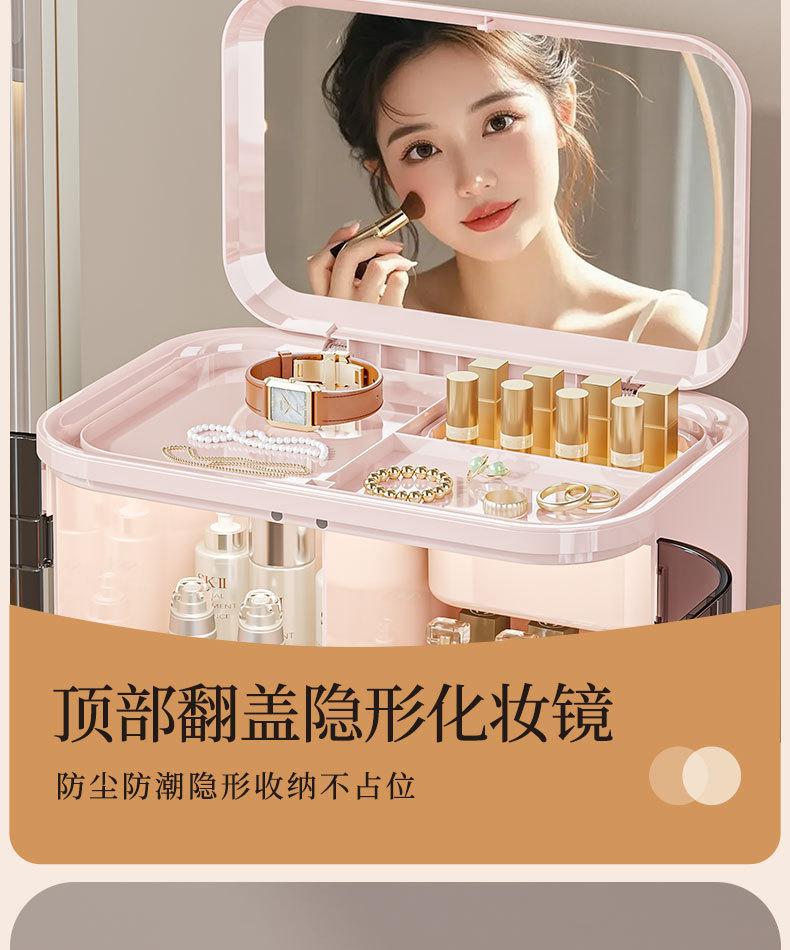 Compra Caja de Almacenamiento de Cosméticos Tocador de Dormitorio Cuidado de la Piel Lápiz Labial Organizador de Cajones con Espejo Caja de Almacenamiento de Escritorio al por mayor en Joom.pro