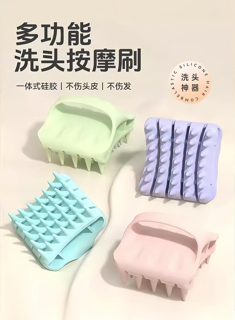 Blue [1 piece] silicone shampoo brush, Pink [1 piece] silicone shampoo brush, Green [1 piece] silicone shampoo brush