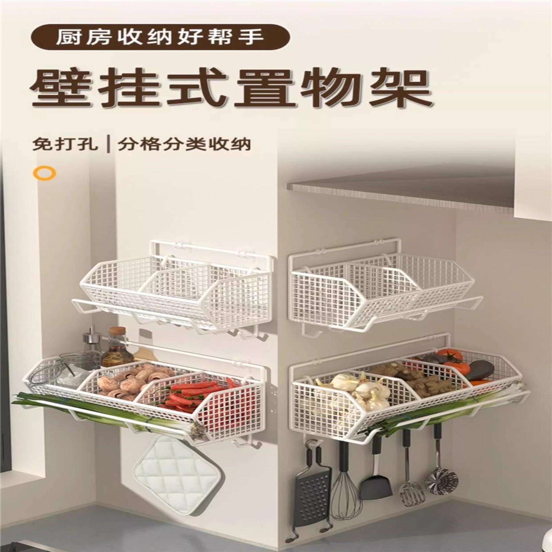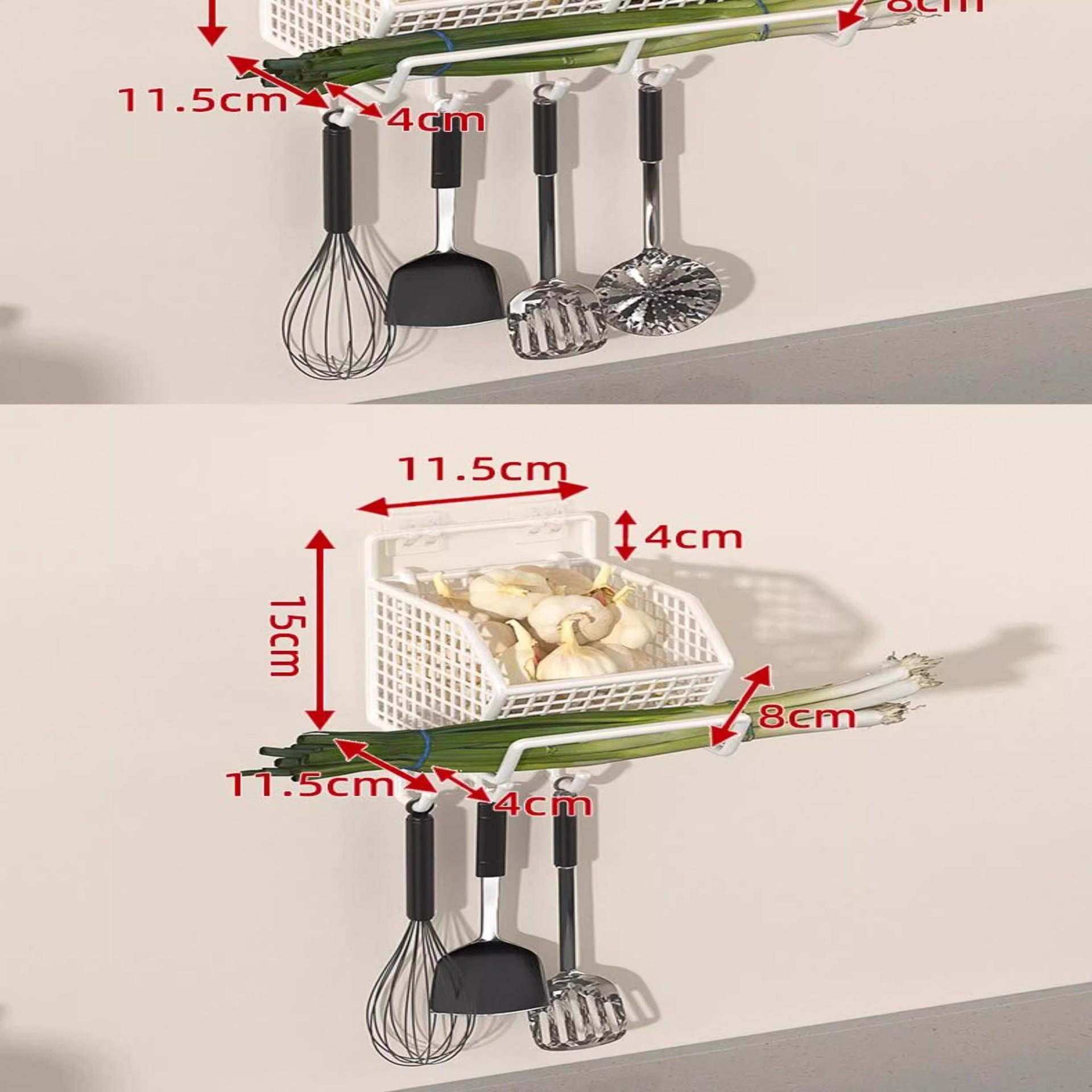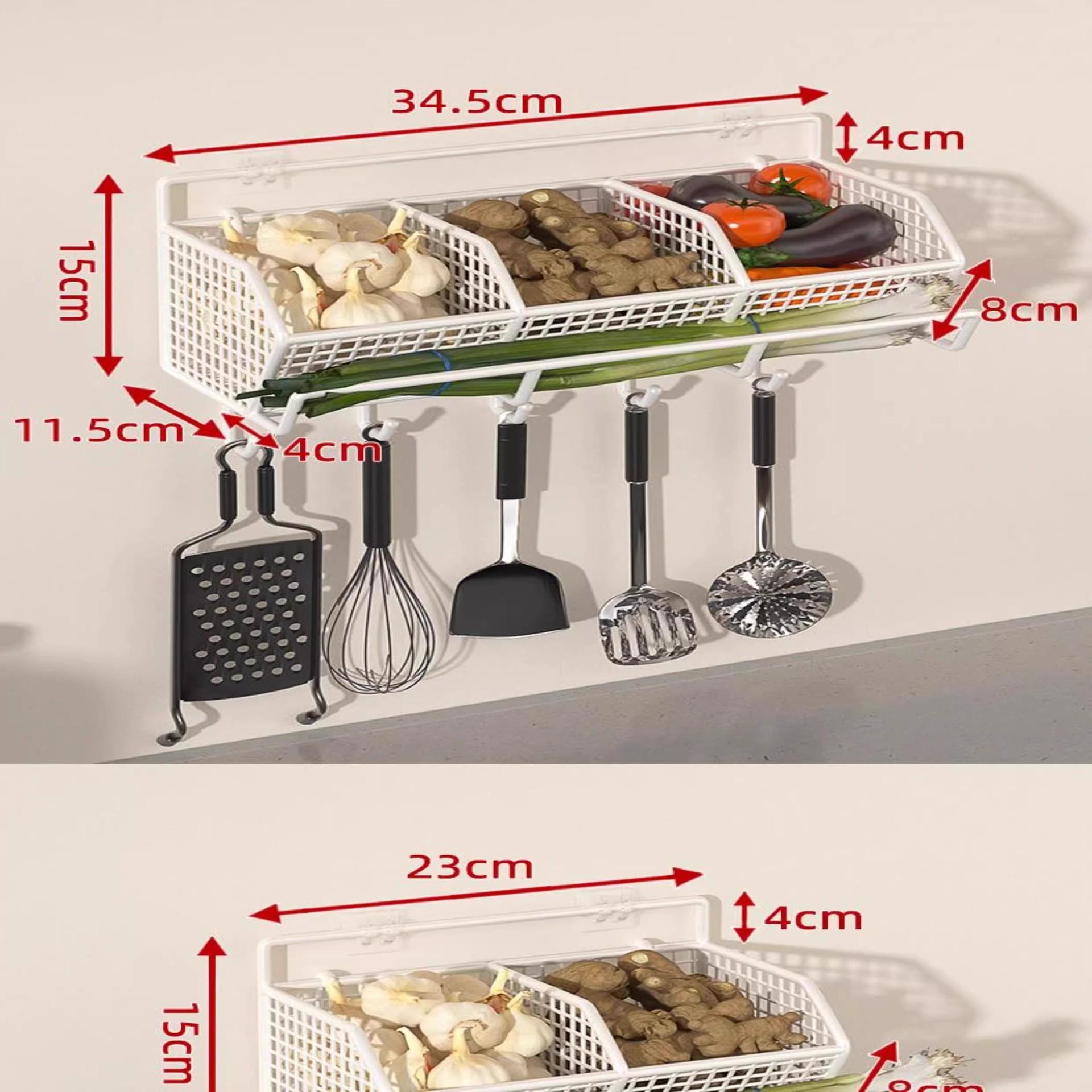 Caja de almacenamiento de cebolla, jengibre y ajo sin perforaciones, estante de almacenamiento multifuncional para cocina, cesta colgante para verduras, especiero de pared, artefacto