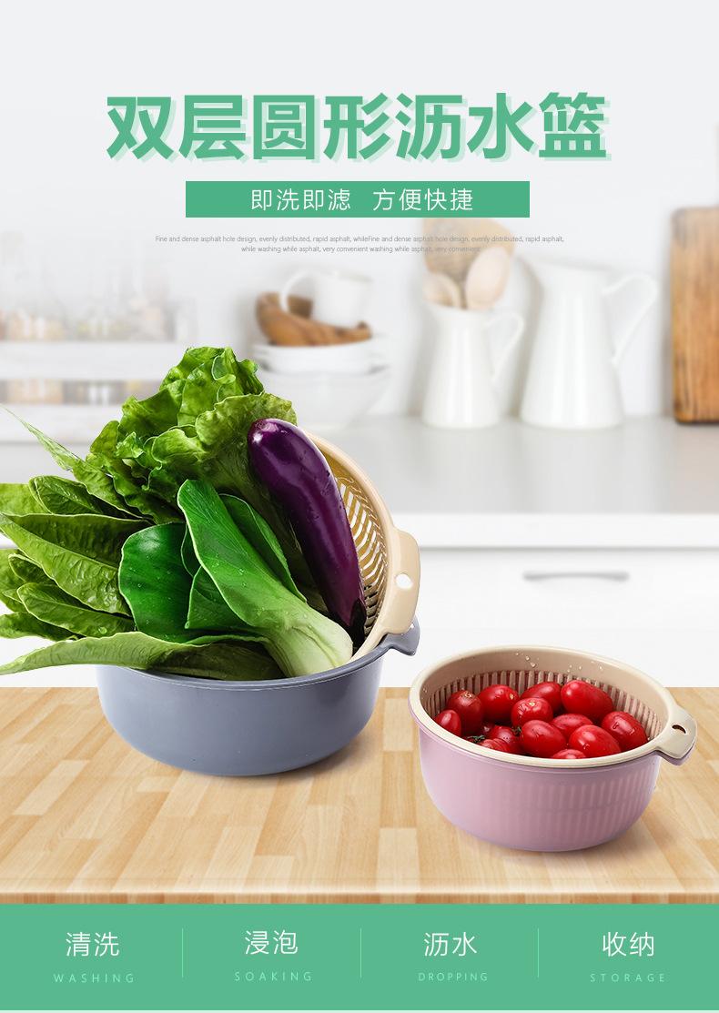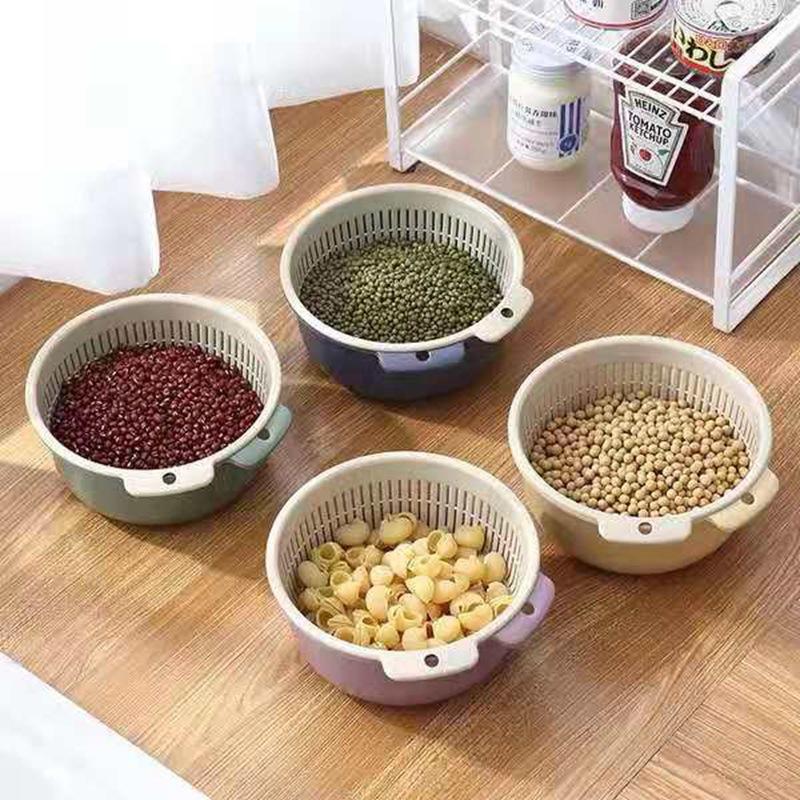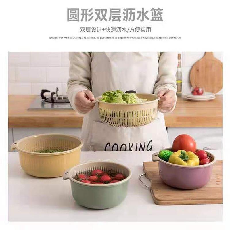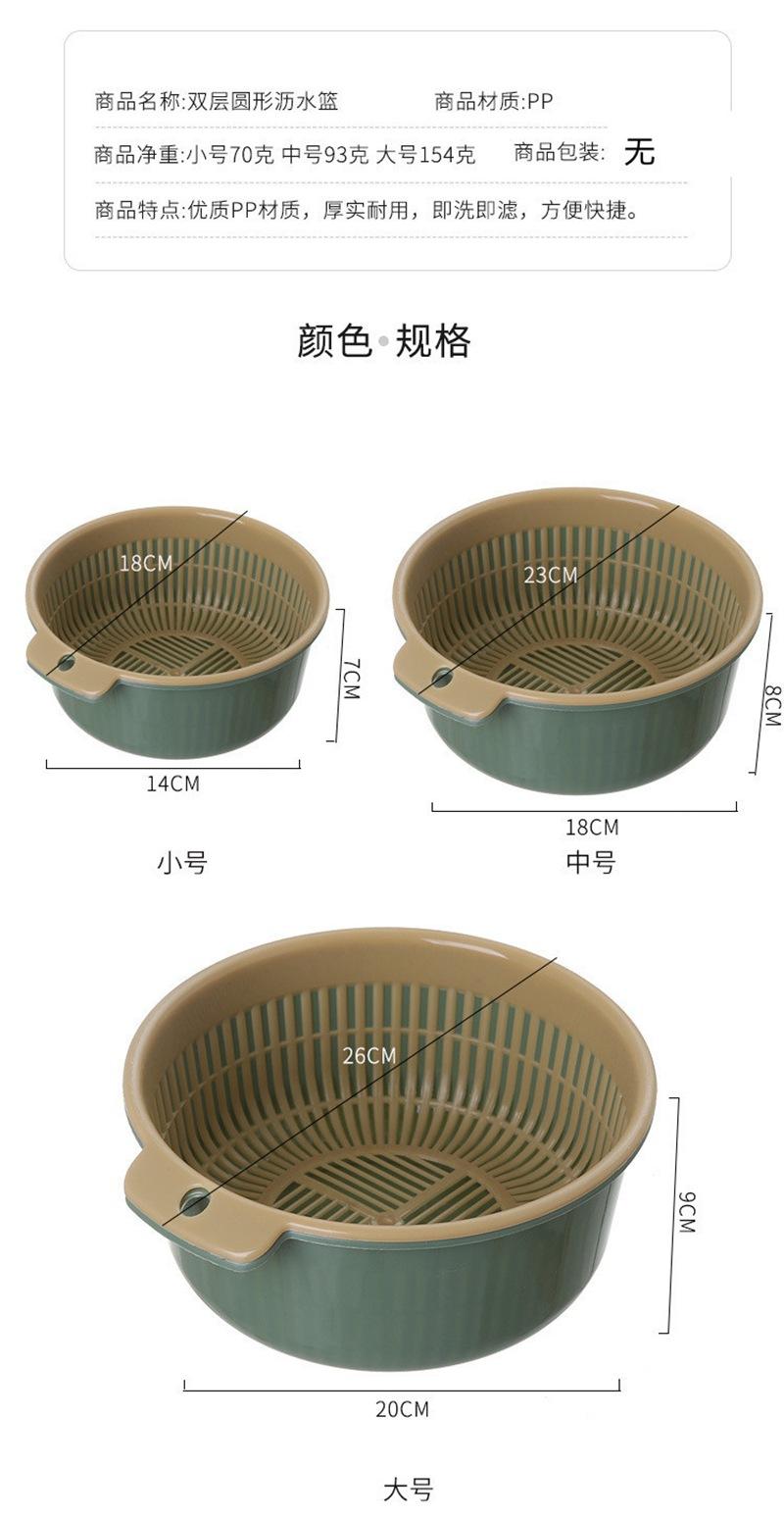 Colador Redondo de Cocina Cesta para Lavar Verduras Almacenamiento de Frutas y Verduras Cesta para Lavar Hogar Cesta de Drenaje de Doble Capa Cesta Escurridora