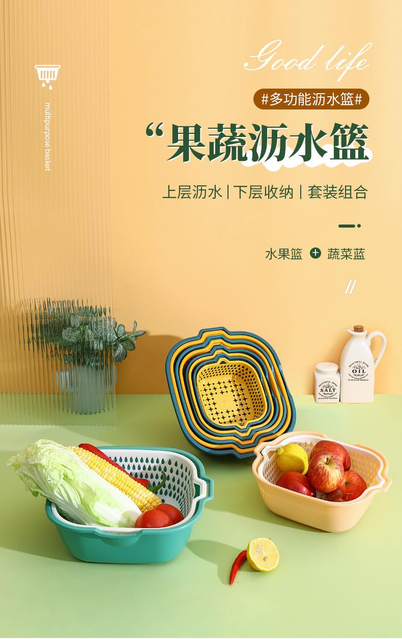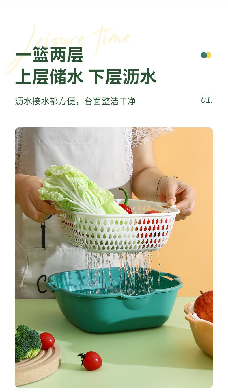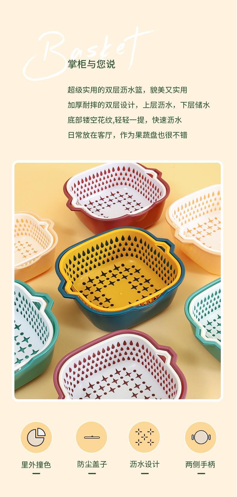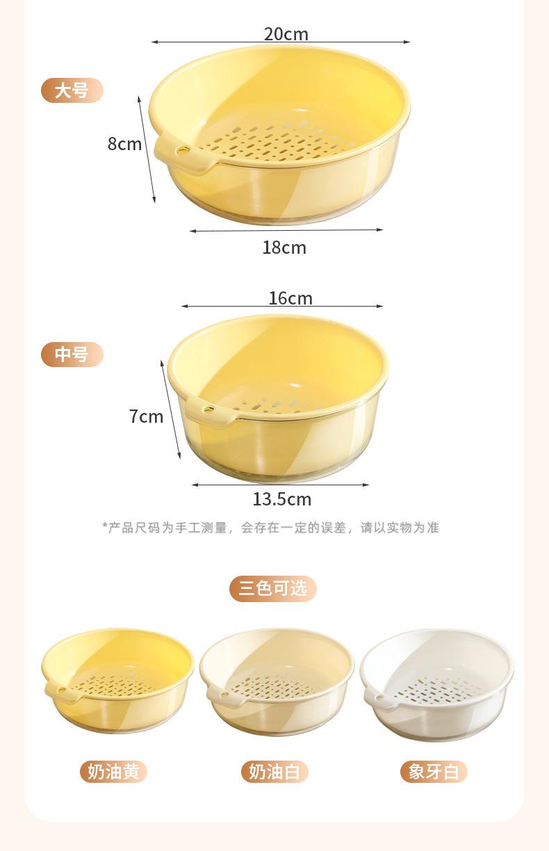 Colador Redondo de Cocina Cesta para Lavar Verduras Almacenamiento de Frutas y Verduras Cesta para Lavar Hogar Cesta de Drenaje de Doble Capa Cesta Escurridora
