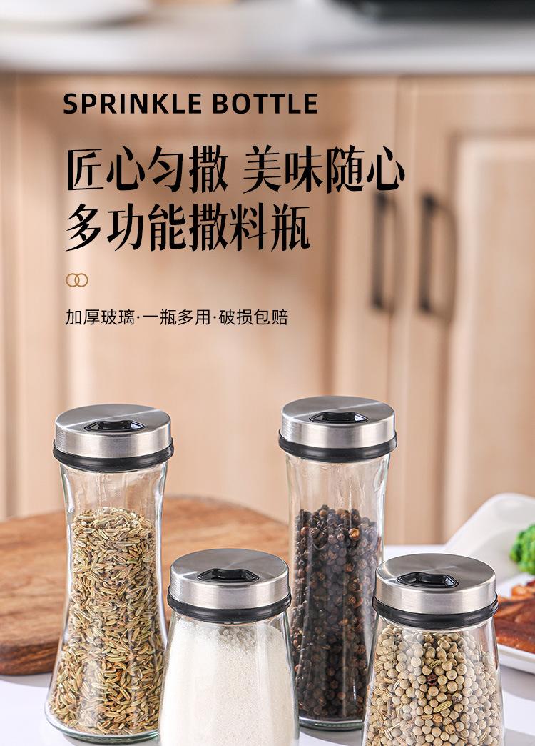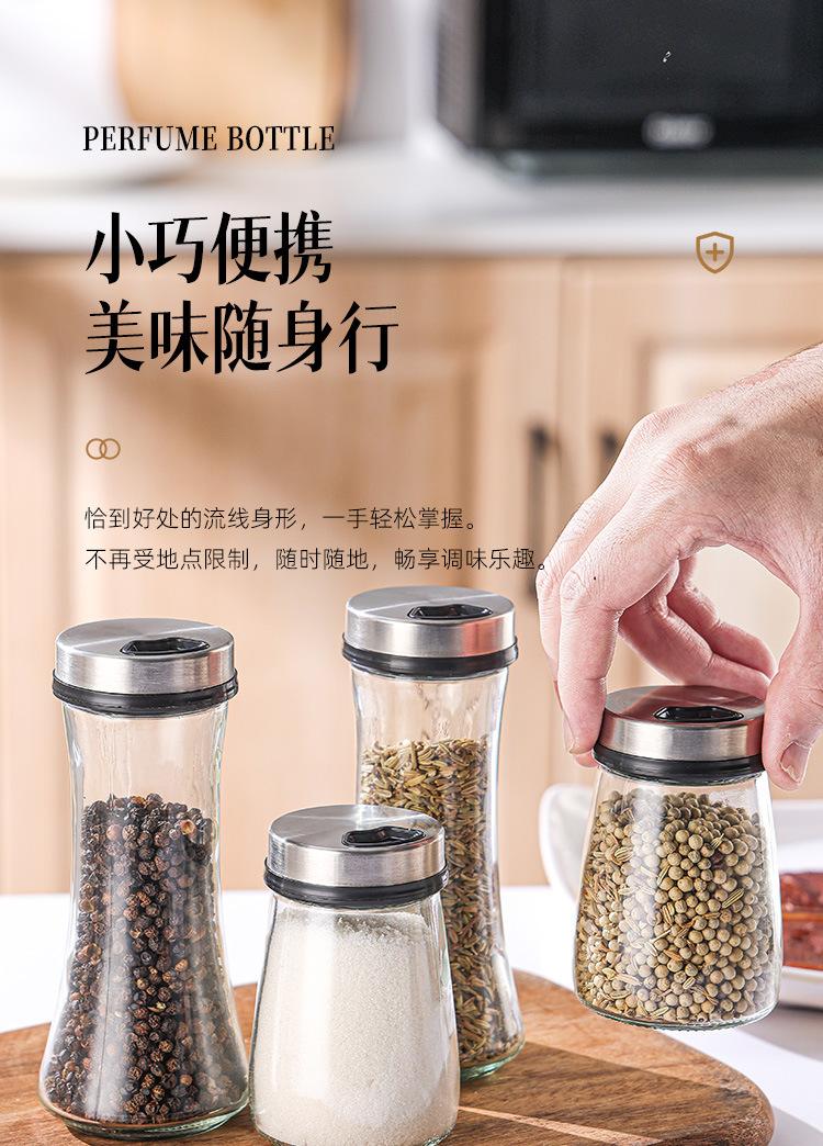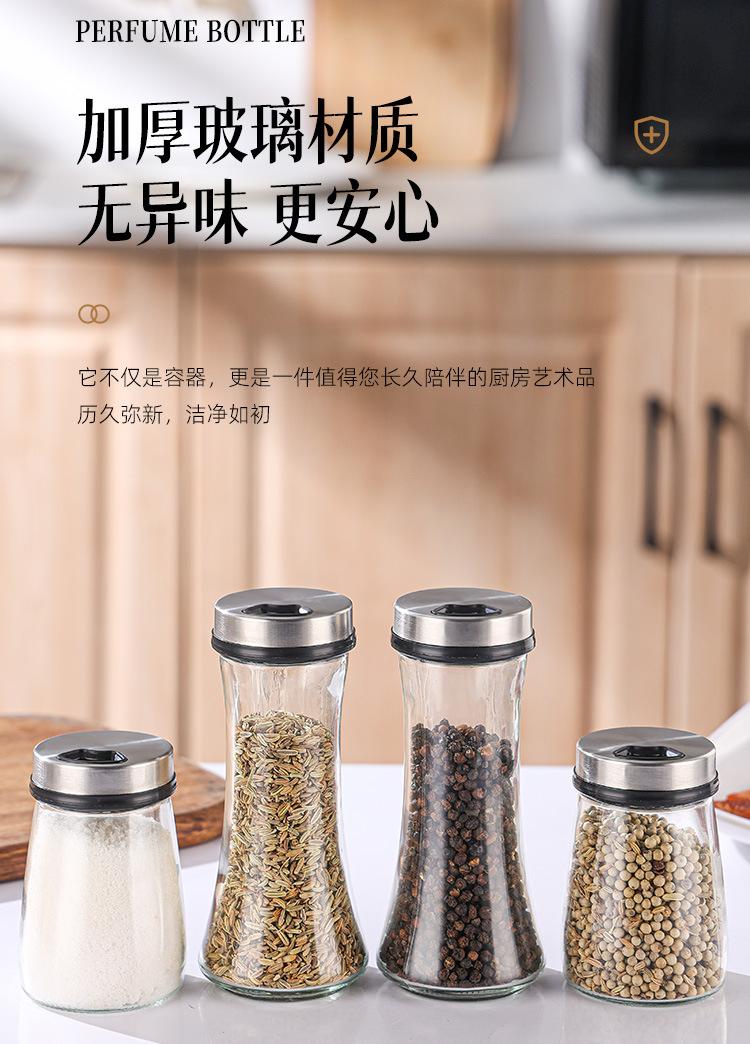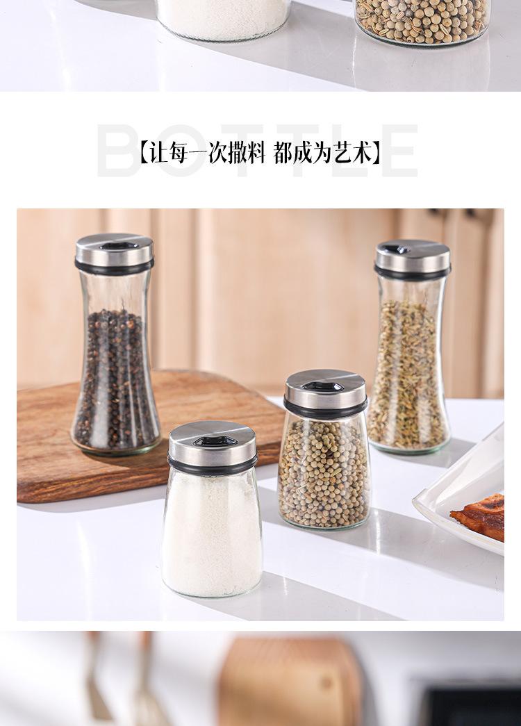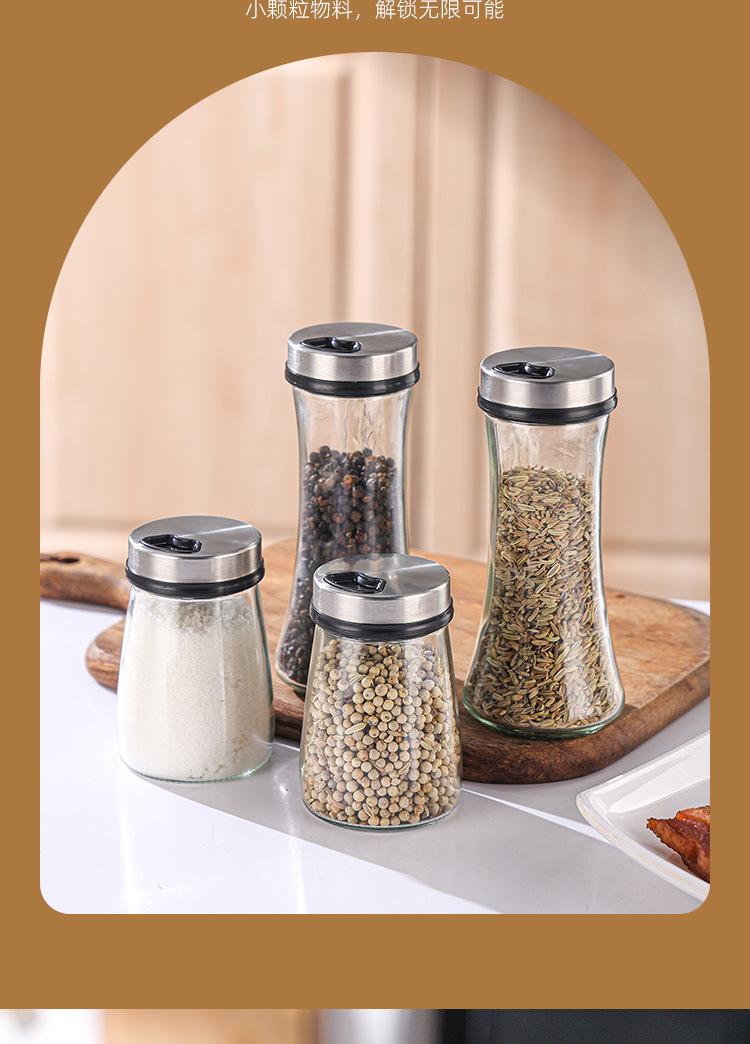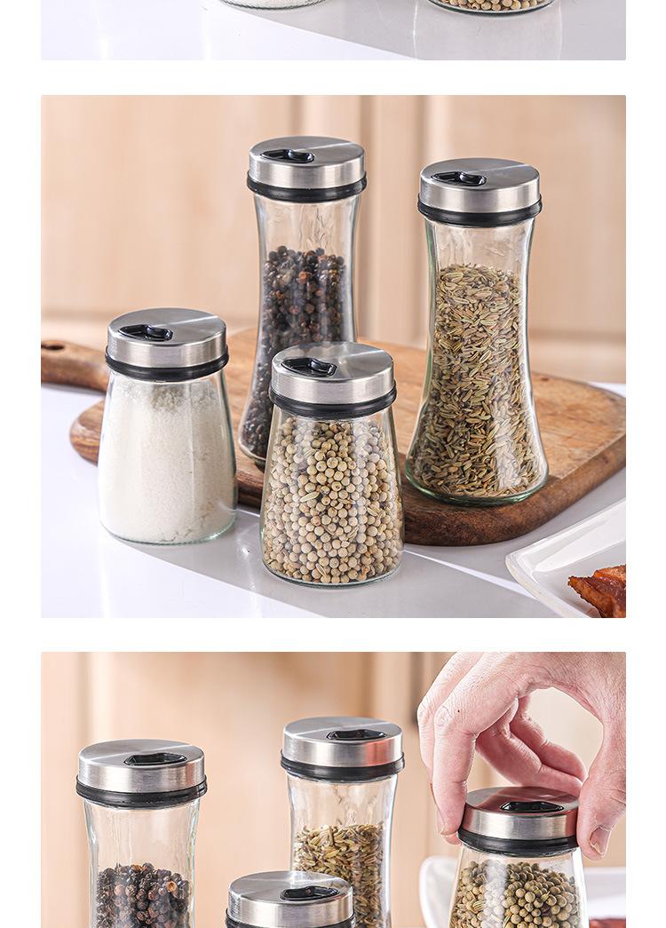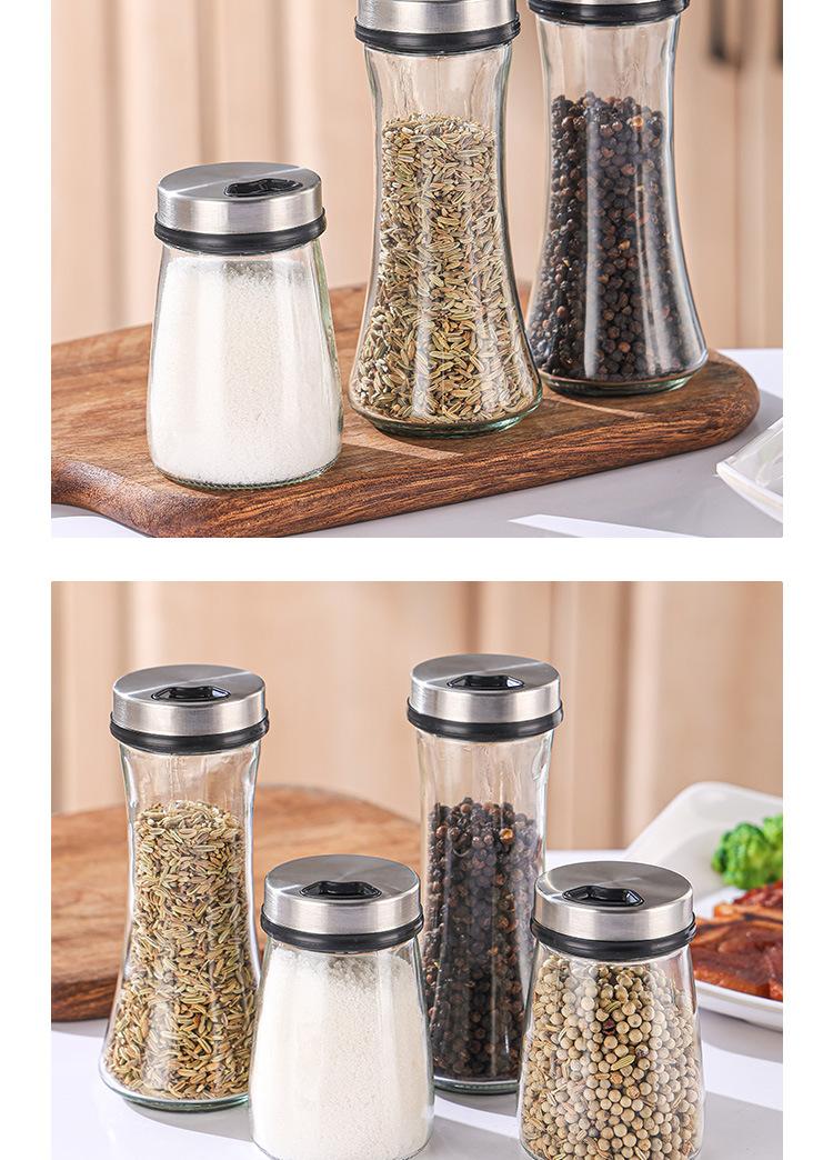 Botella de Vidrio Botella para Condimentos Tarro para Especias Botella Agitadora Barbacoa Chile Pimienta Negra Comino en Polvo Salero Doméstico Almacenamiento de Cocina