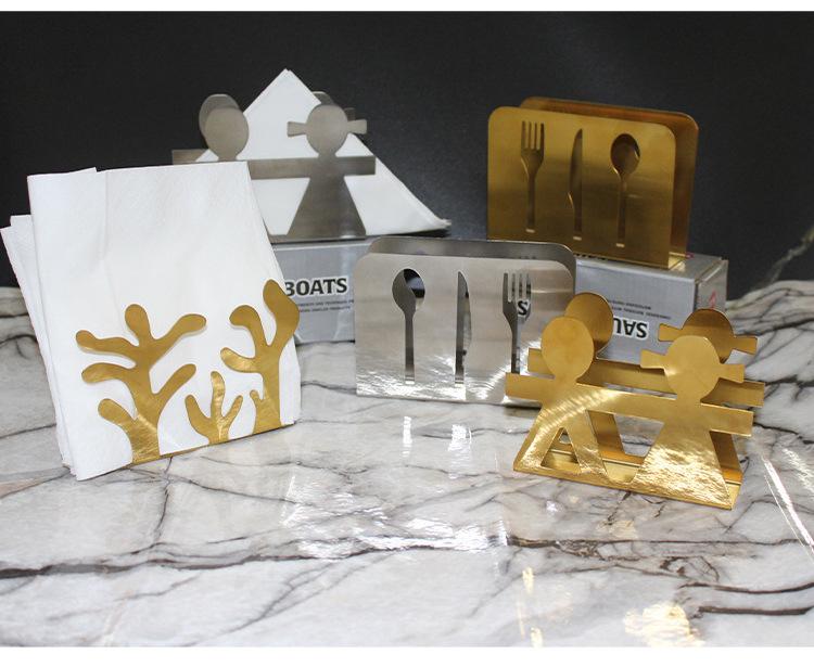 Portaservilletas de Acero Inoxidable Creativo Colgador de Servilletas para Restaurante Occidental Encimera Vertical Soporte para Servilletas para Limpiar la Boca Almacenamiento de Asiento para Toallas Cuadrado