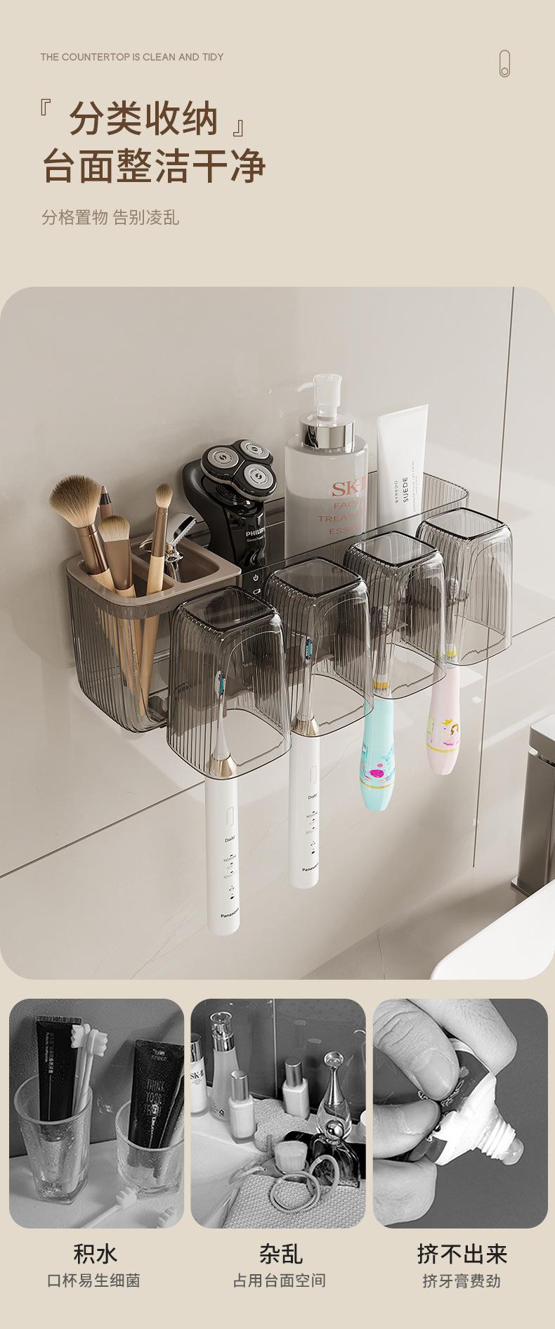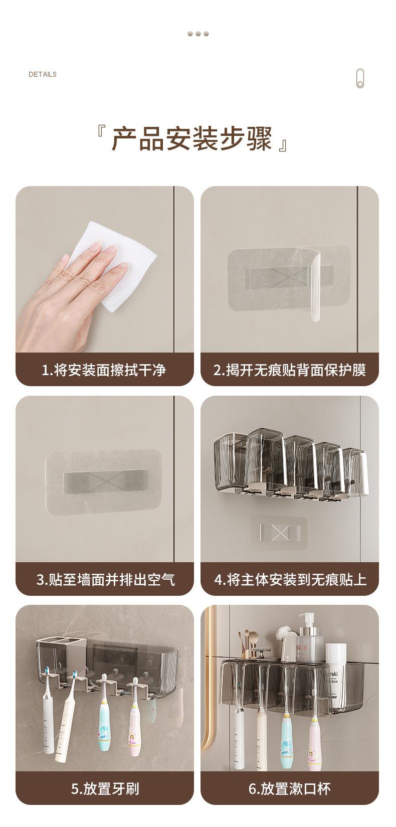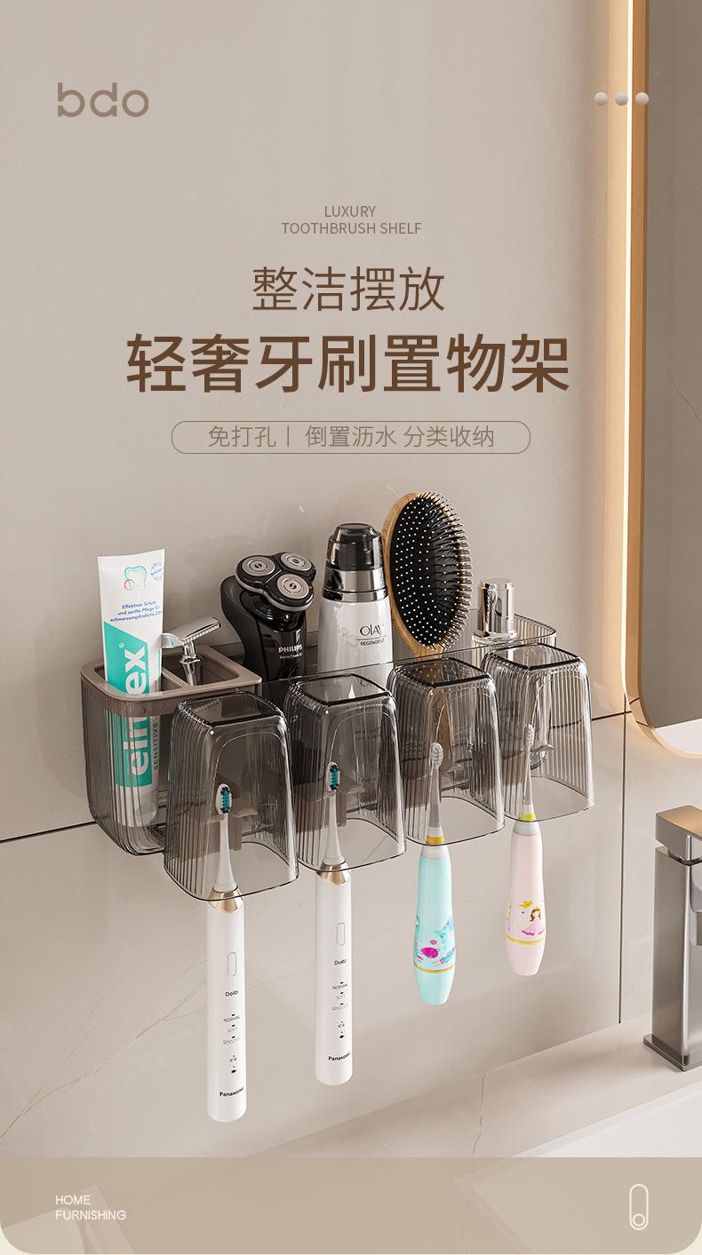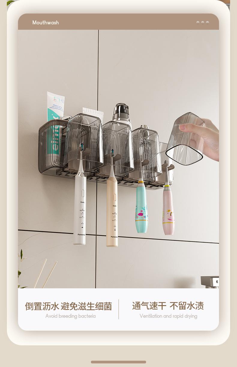 Soporte para cepillos de dientes montado en la pared sin perforaciones, soporte para cepillos de dientes, pasta de dientes, taza, estante de almacenamiento, baño, taza para enjuague bucal, soporte para cepillos de dientes