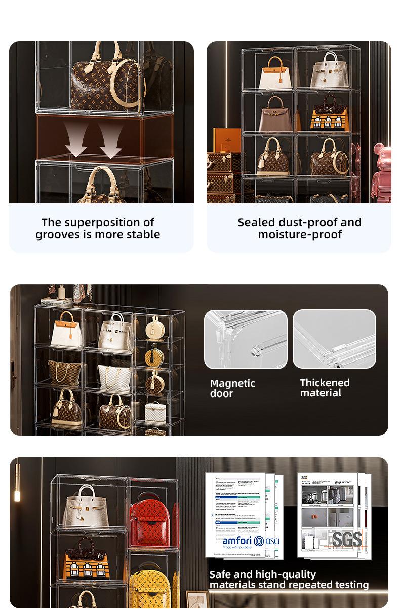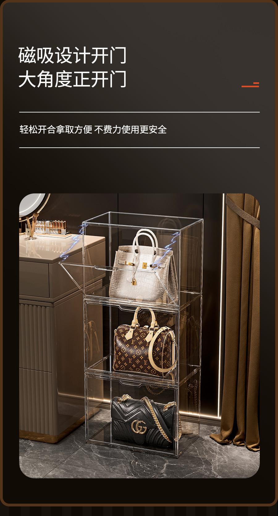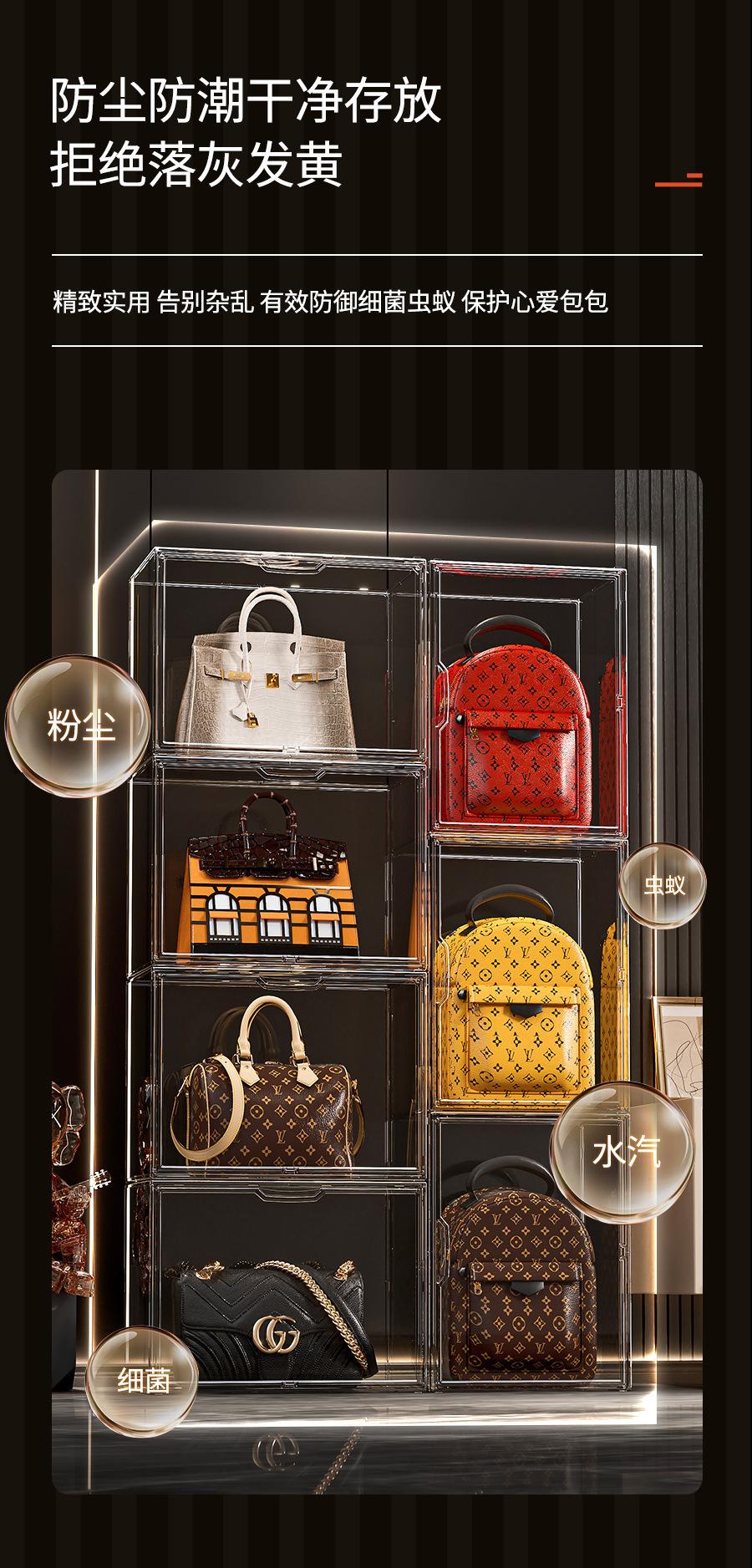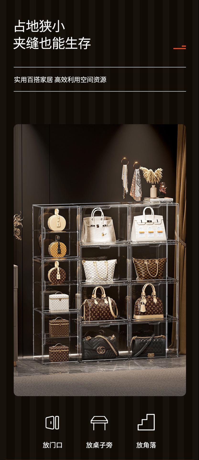 Artefacto de almacenamiento de bolsas, caja de almacenamiento de exhibición transparente de lujo, estante de almacenamiento de bolsas, acabado doméstico a prueba de polvo, almacenamiento