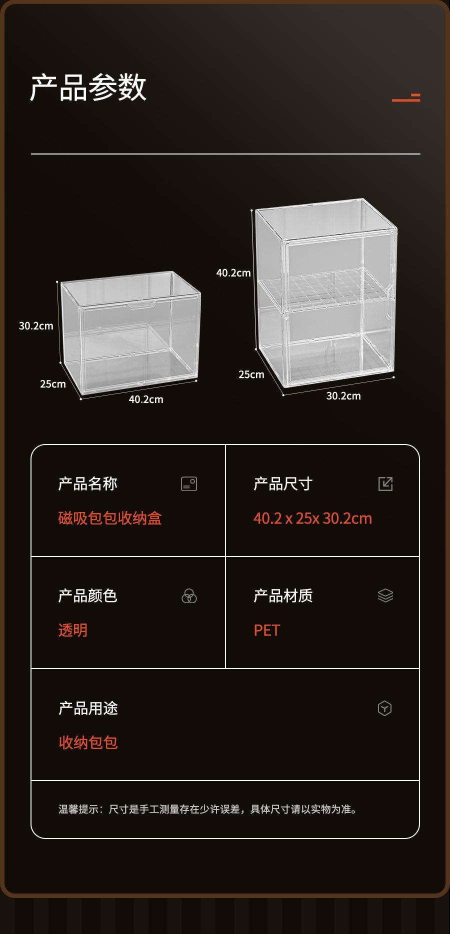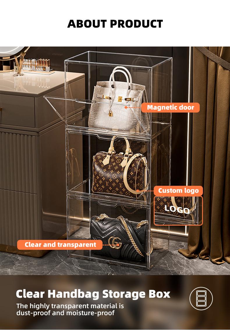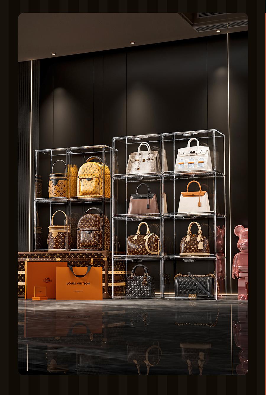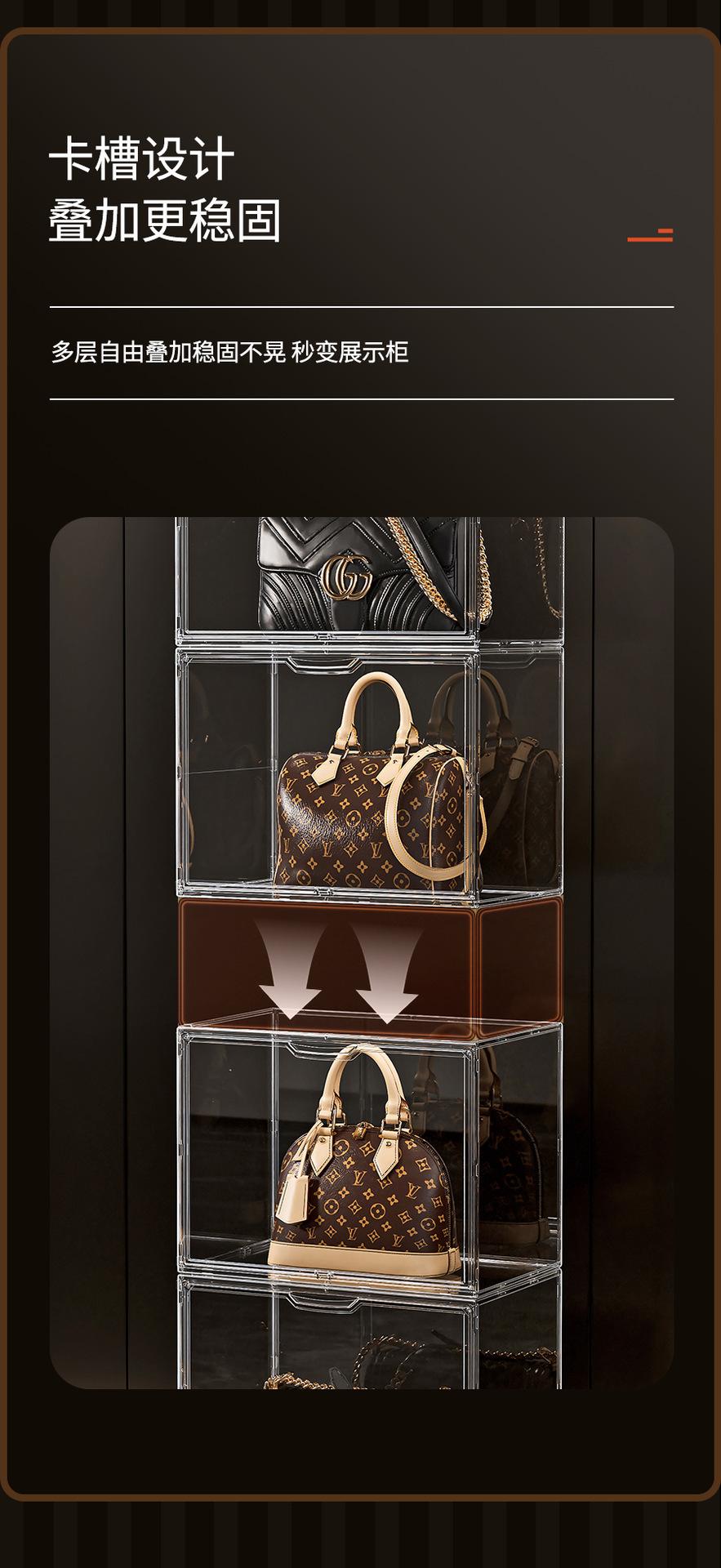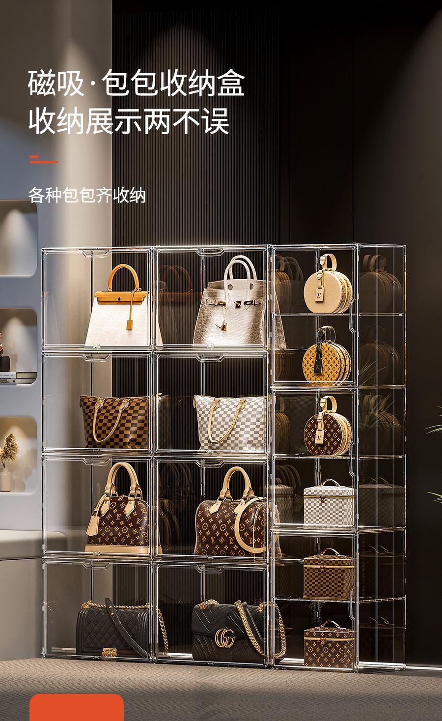 Artefacto de almacenamiento de bolsas, caja de almacenamiento de exhibición transparente de lujo, estante de almacenamiento de bolsas, acabado doméstico a prueba de polvo, almacenamiento
