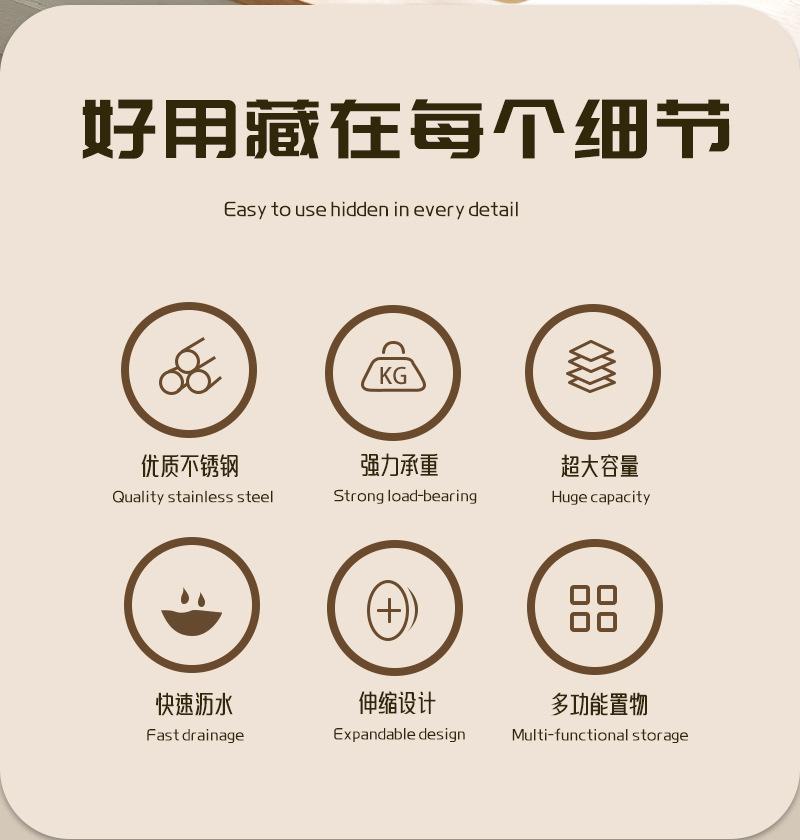 Modern and simple, Stainless steel telescopic drain basket
