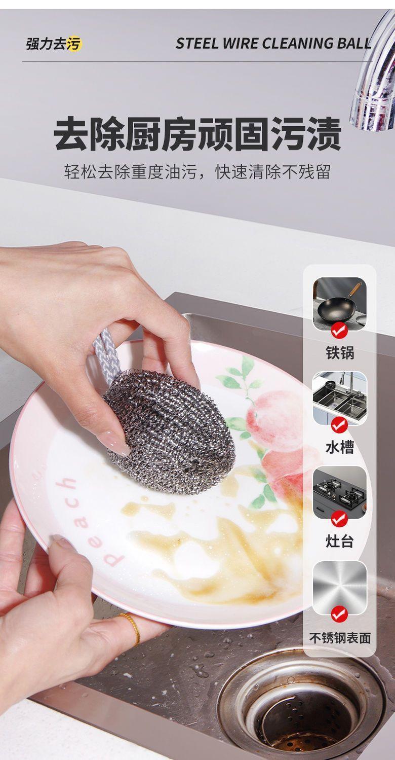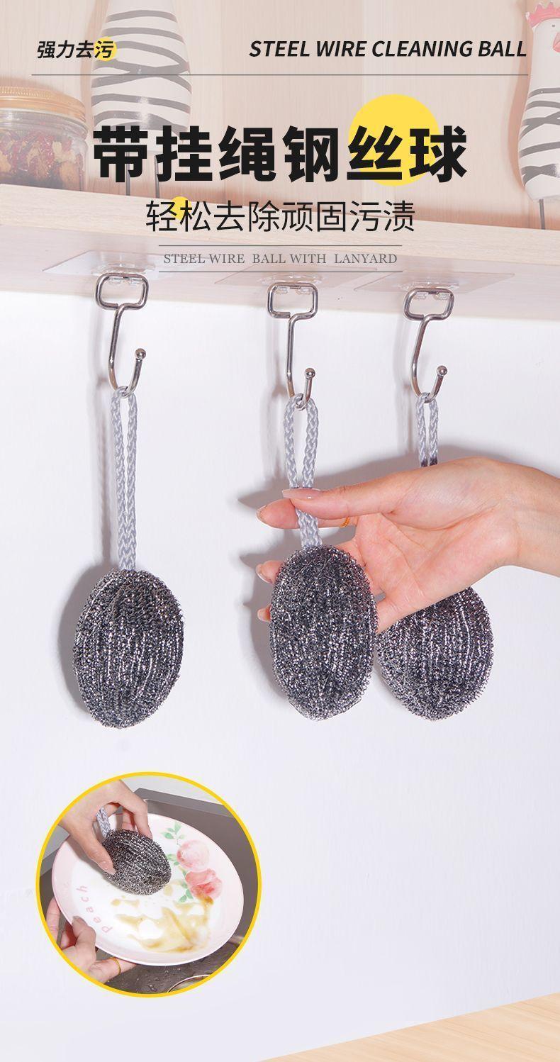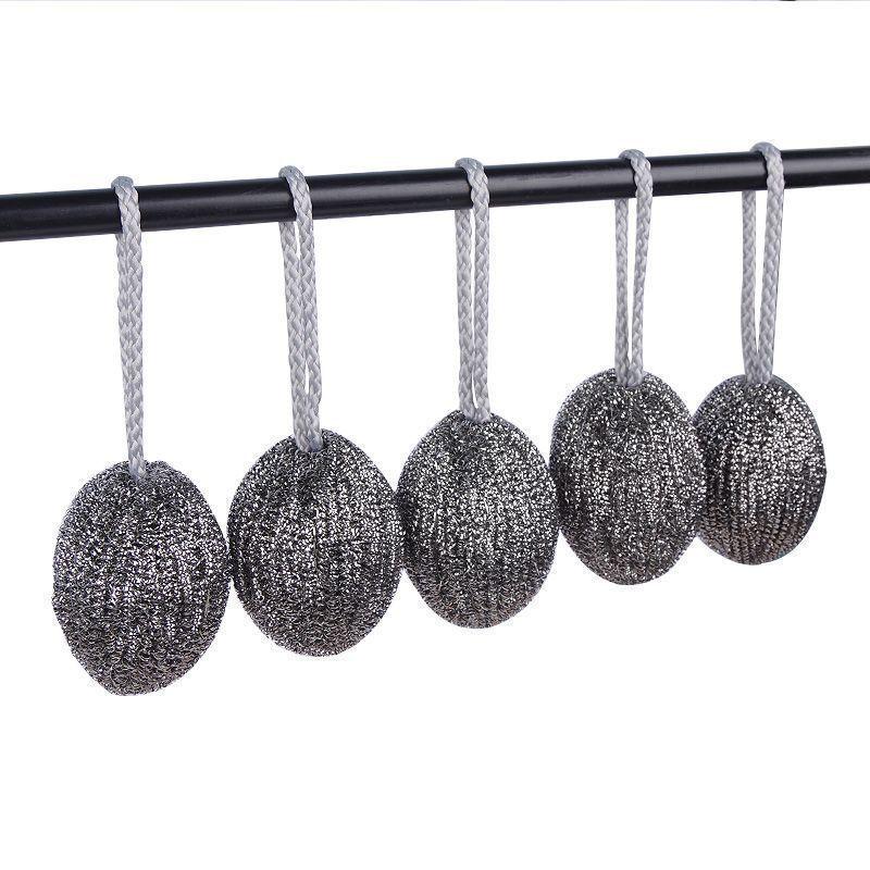 Estropajo de Acero con Cordón para Colgar Cocina Antiadherente Cepillo para Aceite Lavado de Olla Lavavajillas Artefacto Bola de Limpieza de Acero Inoxidable Duradera de Alta Densidad