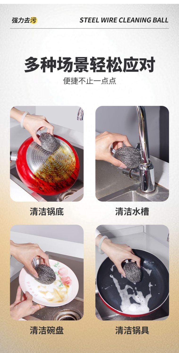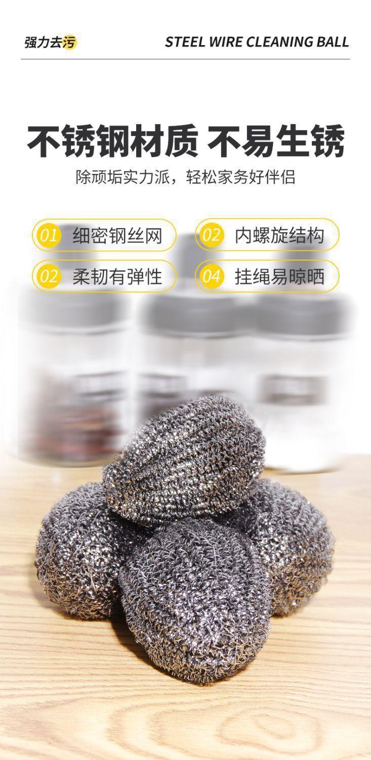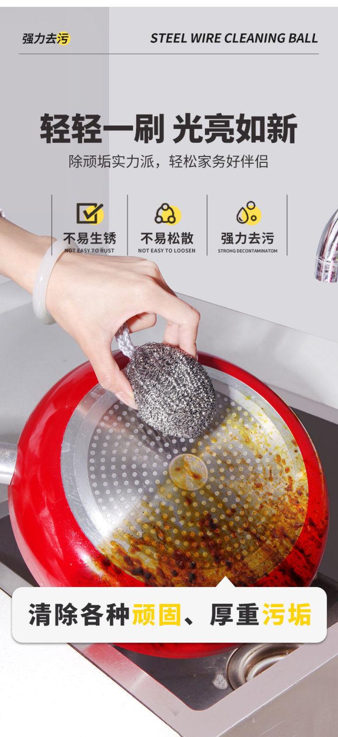 Estropajo de Acero con Cordón para Colgar Cocina Antiadherente Cepillo para Aceite Lavado de Olla Lavavajillas Artefacto Bola de Limpieza de Acero Inoxidable Duradera de Alta Densidad