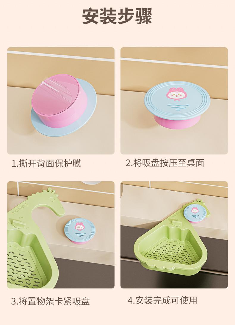 Draining Basket-Yellow, Draining Basket-Green, Suction Cup Fixator-Pink, Suction Cup Mount - Purple, Suction Cup Fixator-Blue