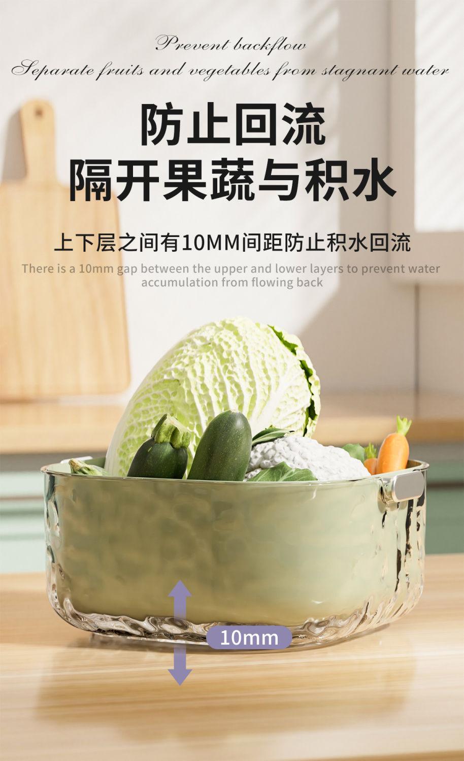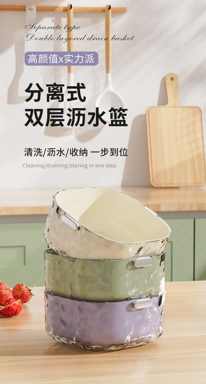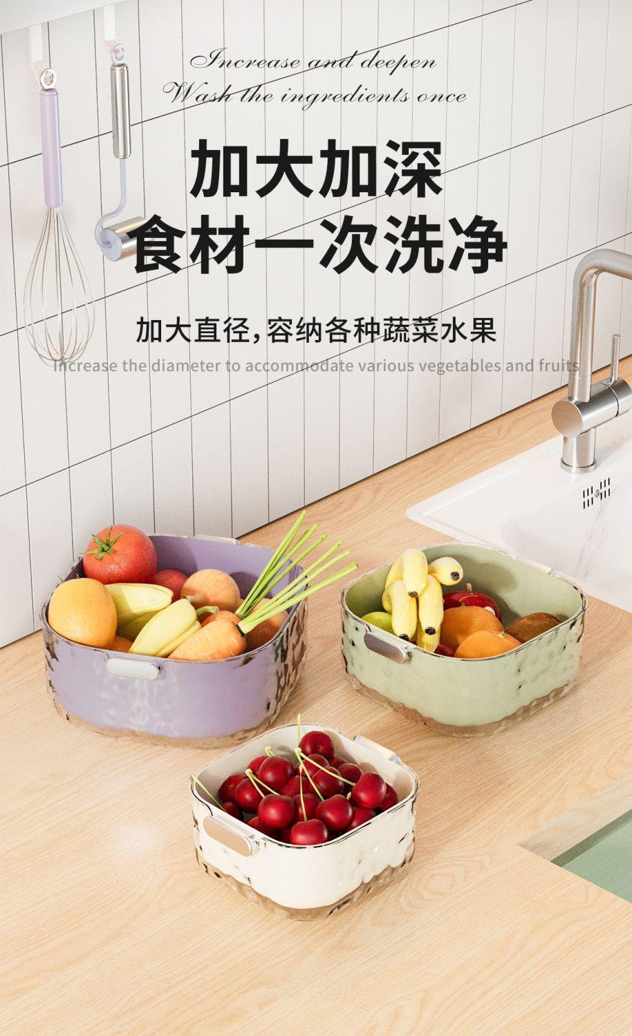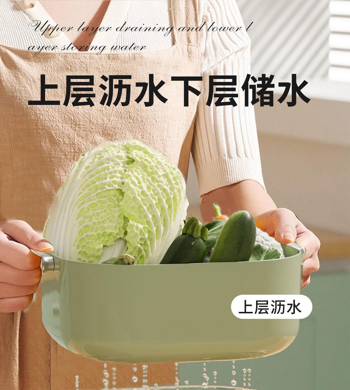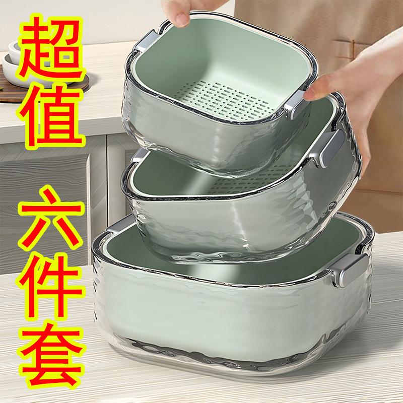 Juego de seis piezas de cesta de drenaje de lavabo para verduras de doble capa, cocina, sala de estar, hogar, plato para lavar frutas, cesta de verduras de plástico simple