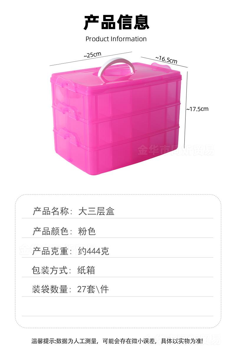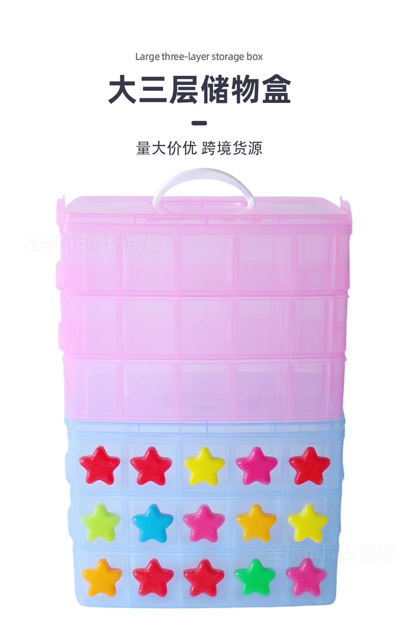 Caja Portátil Grande de Tres Capas Estuche de Plástico PP Caja de Maquillaje Caja de Joyería Organizador de Accesorios de Juguete Caja de Almacenamiento Caja de Exhibición de Muestras