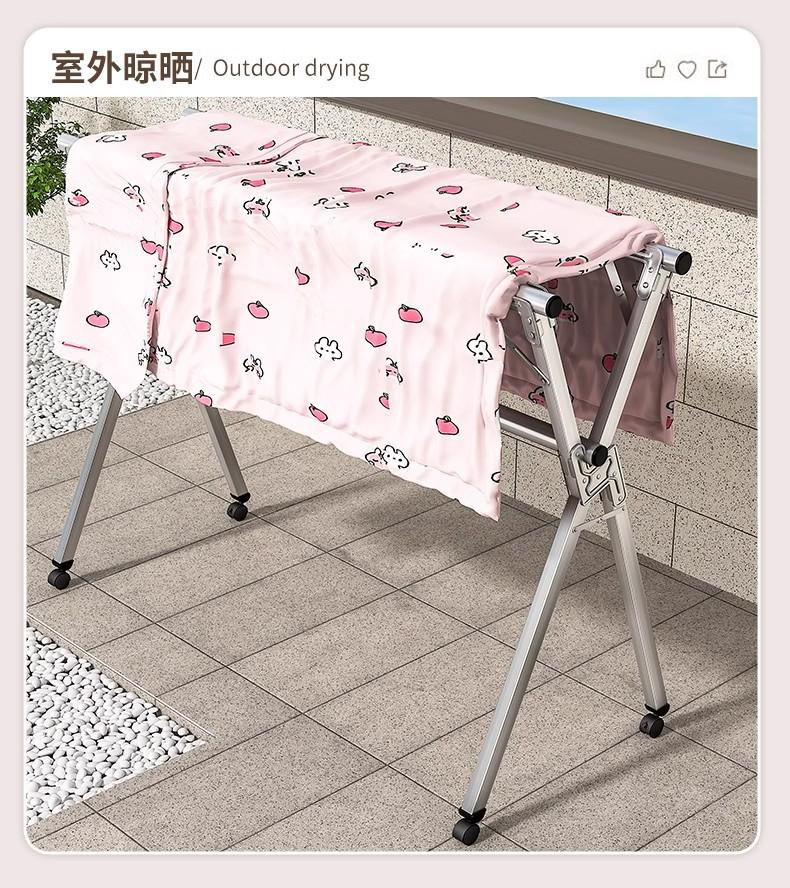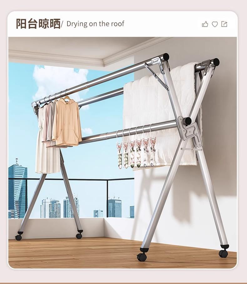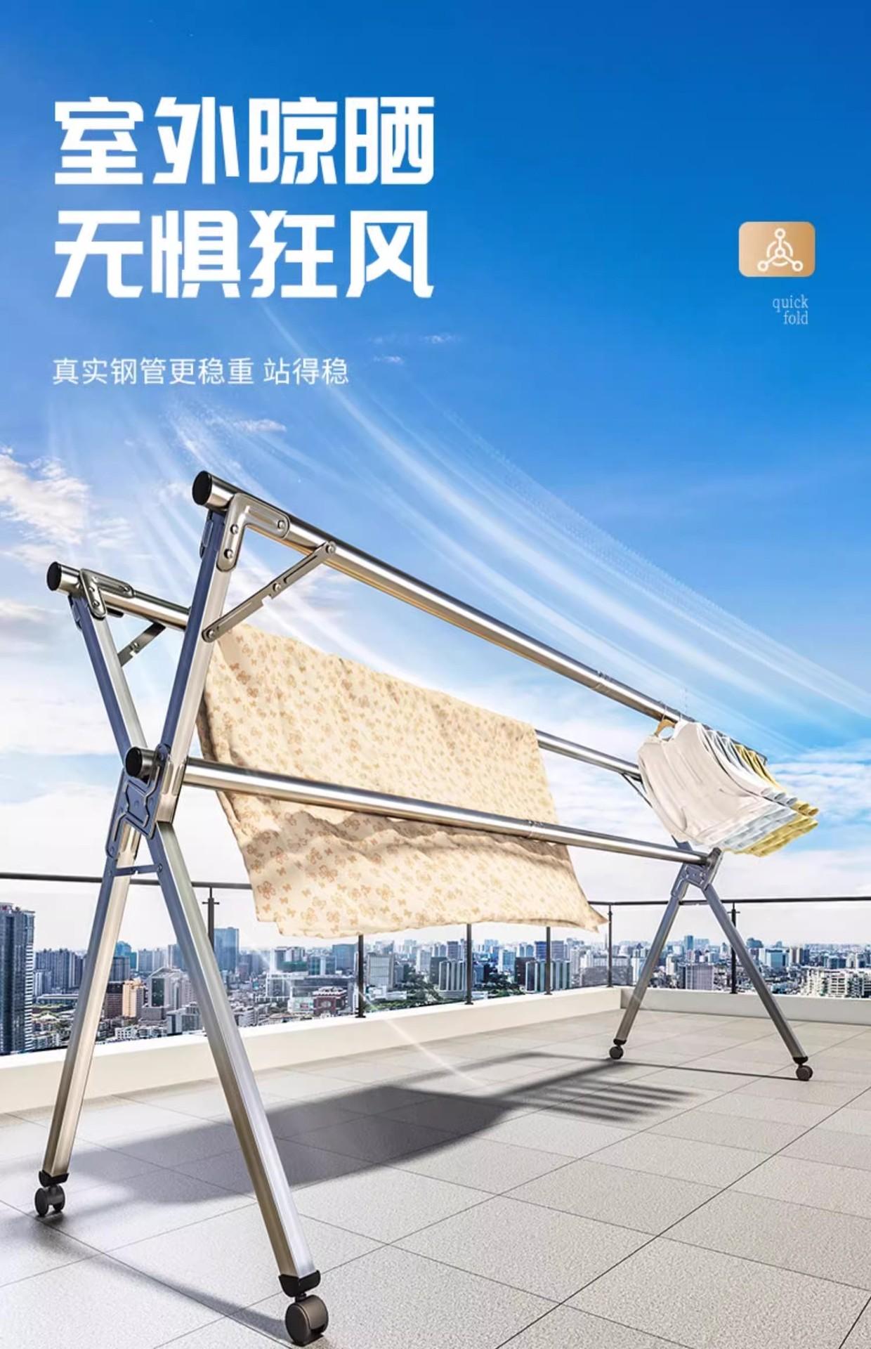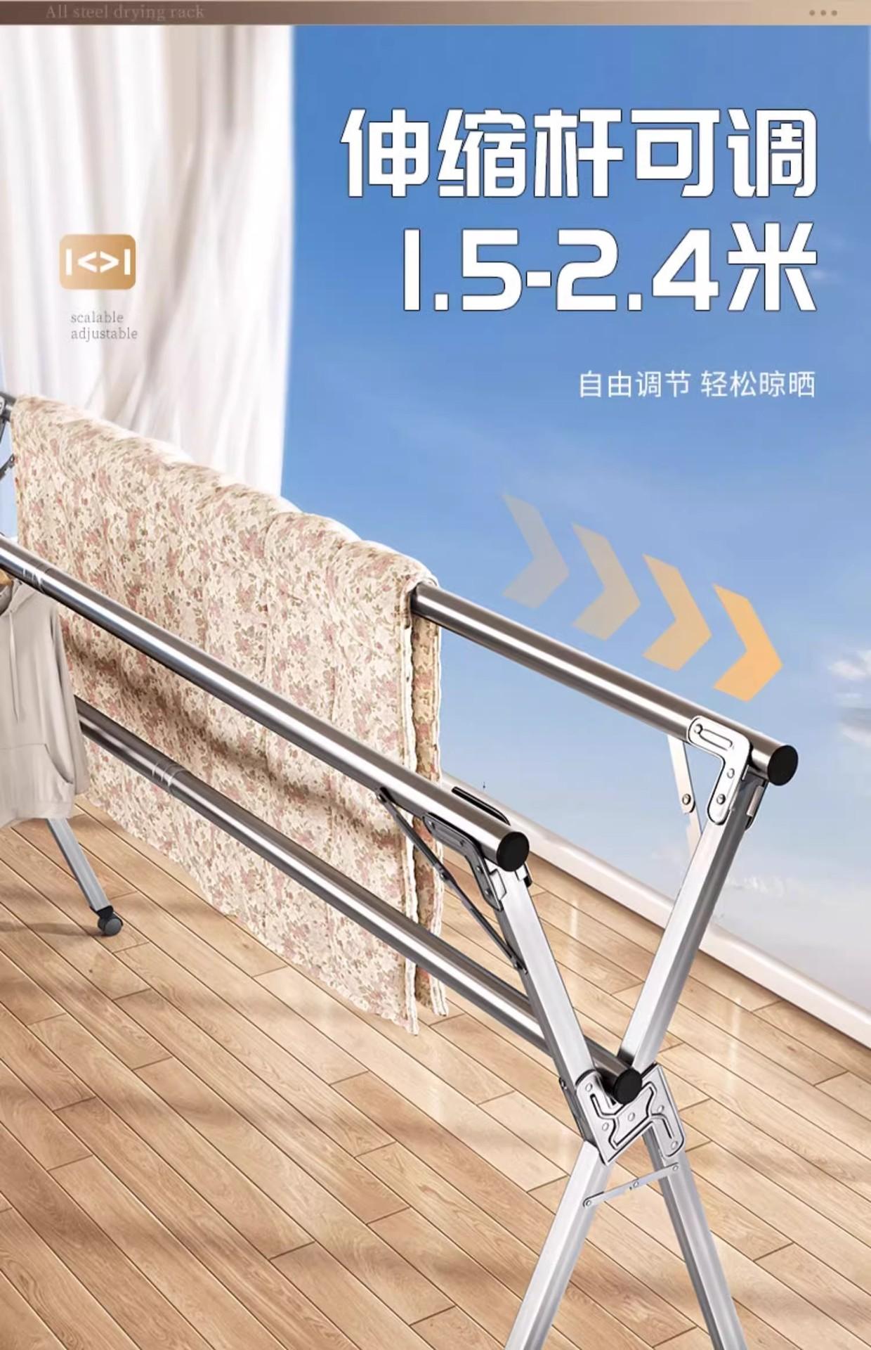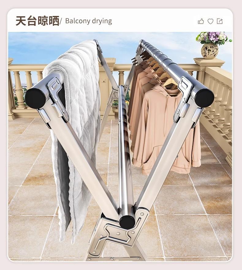 Tendedero plegable de piso para balcón interior, hogar, dormitorio, acero inoxidable, exterior, frío, barra telescópica, secado de edredón, artefacto