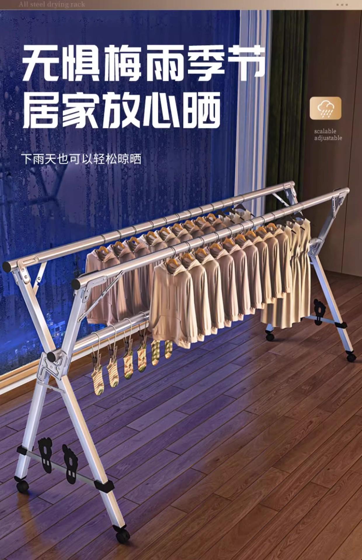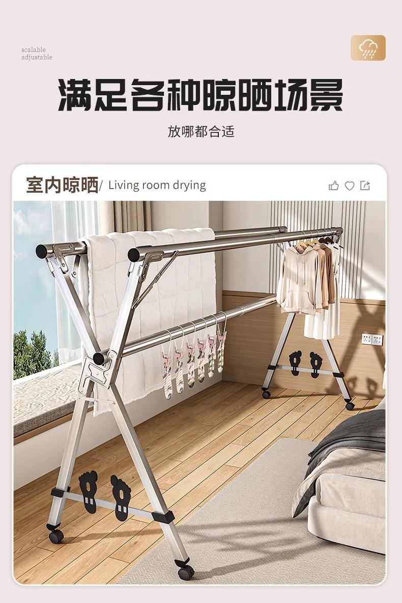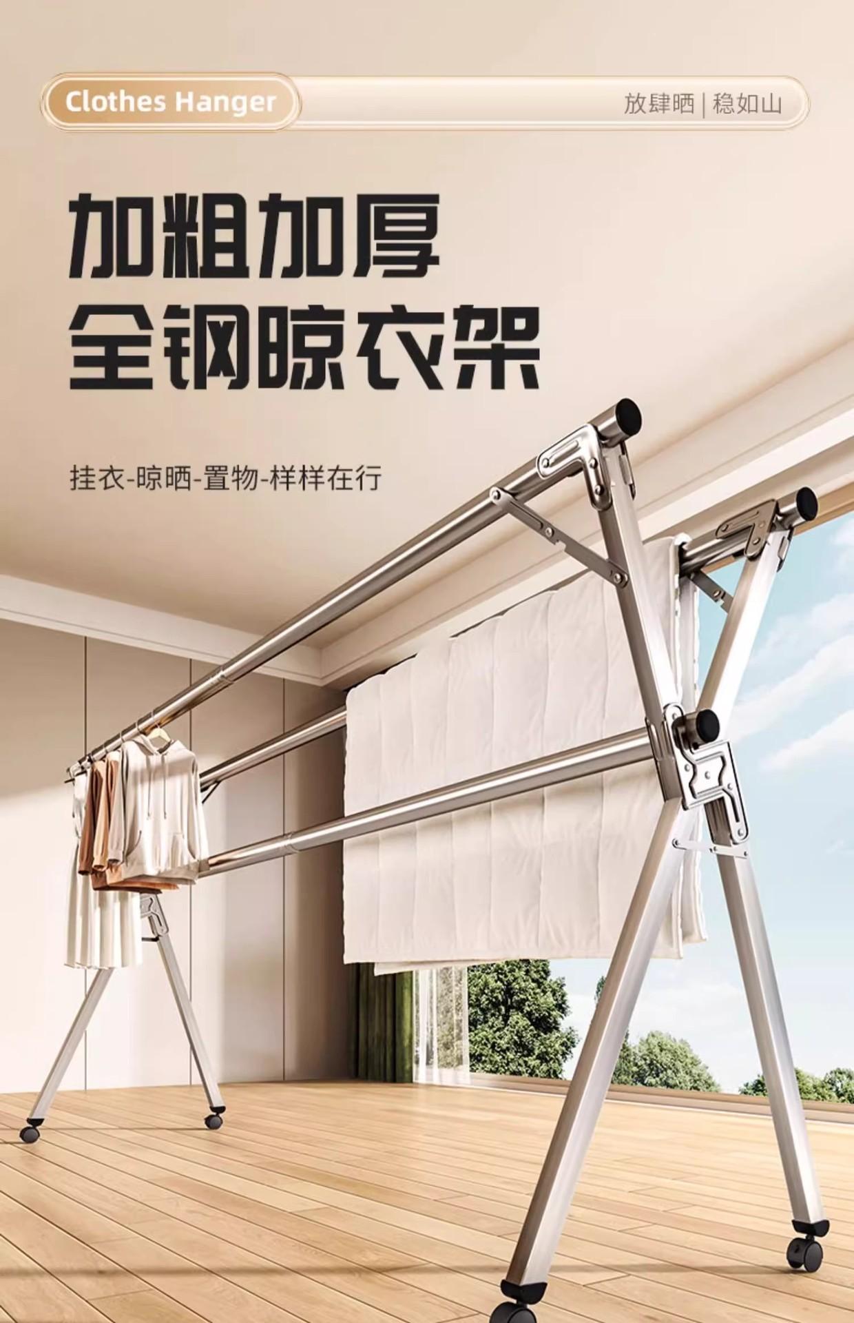 Tendedero plegable de piso para balcón interior, hogar, dormitorio, acero inoxidable, exterior, frío, barra telescópica, secado de edredón, artefacto