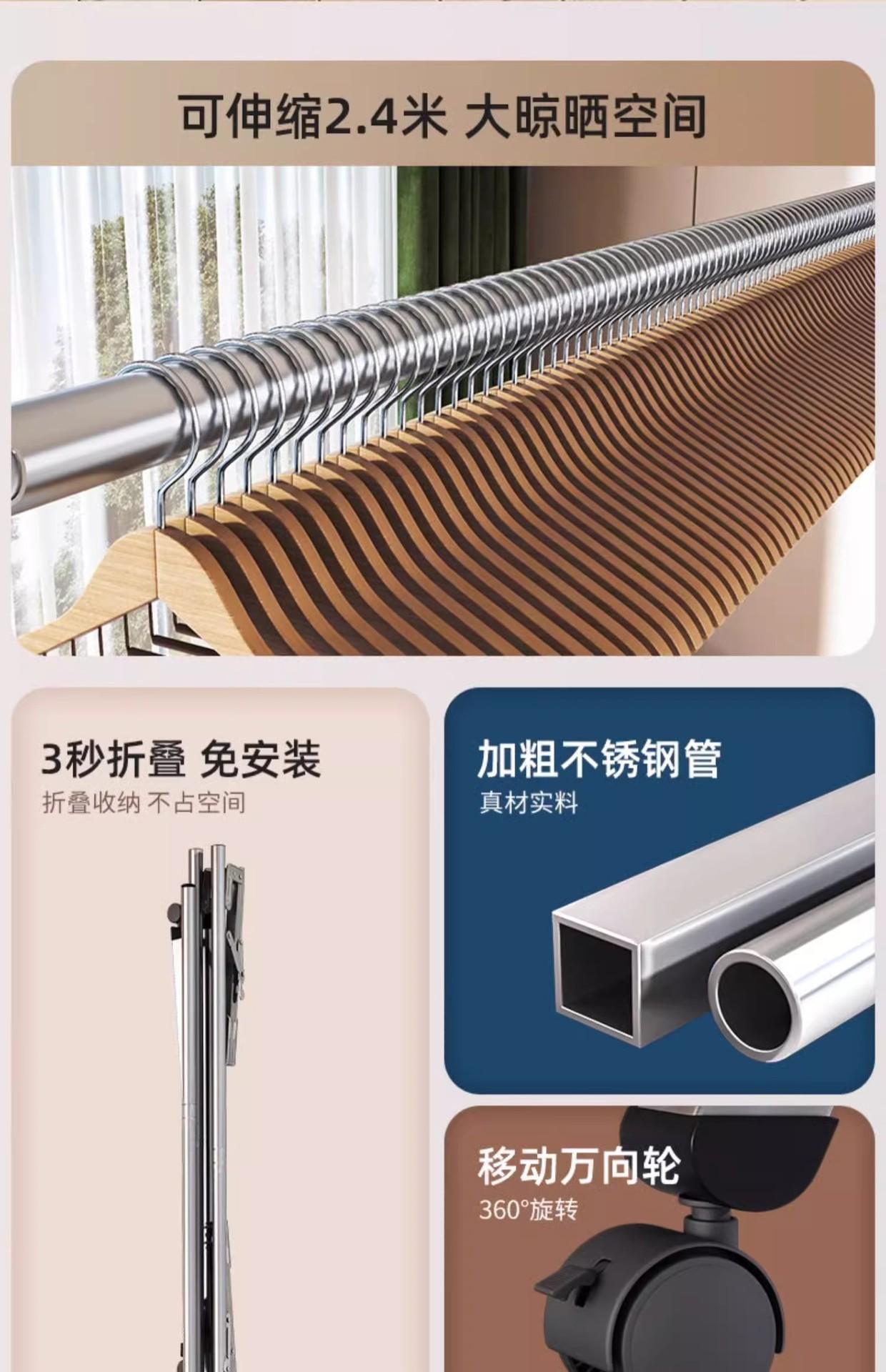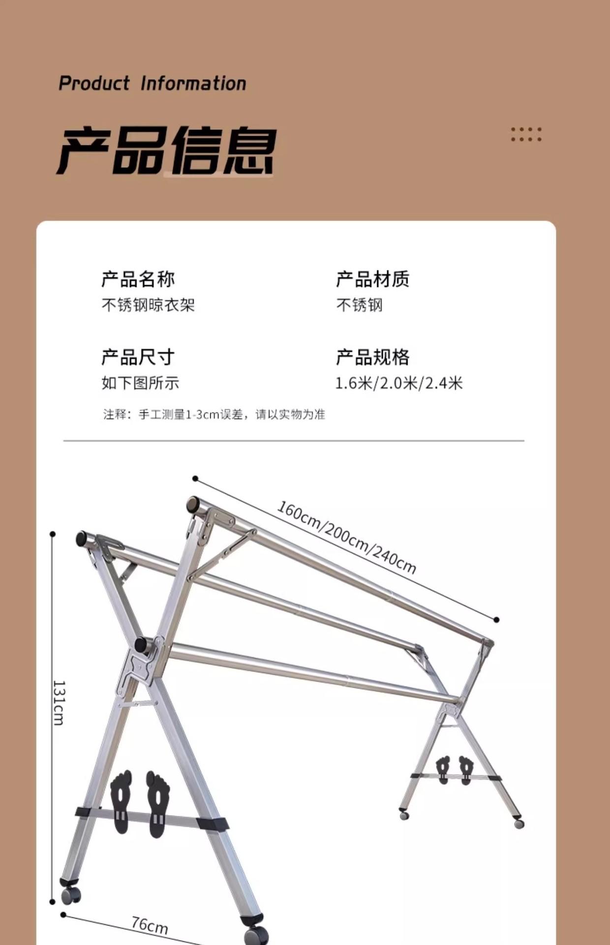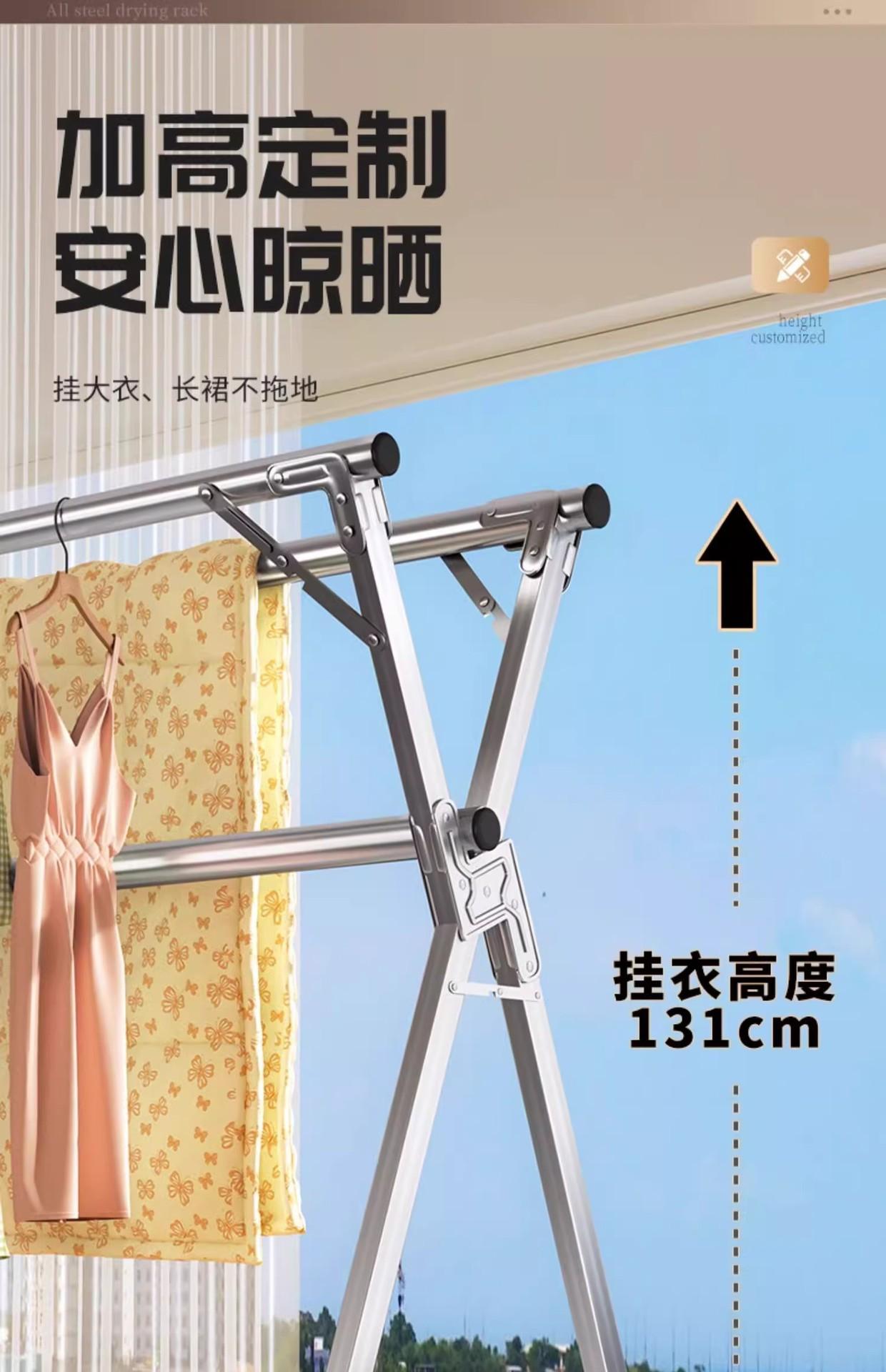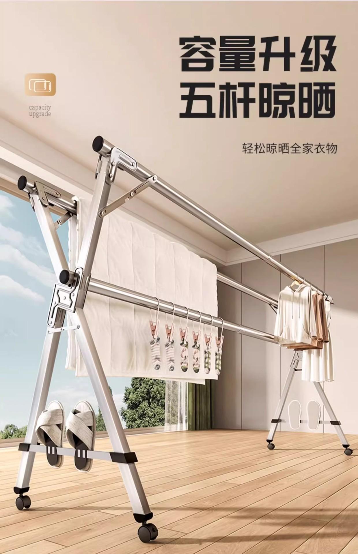 Tendedero plegable de piso para balcón interior, hogar, dormitorio, acero inoxidable, exterior, frío, barra telescópica, secado de edredón, artefacto