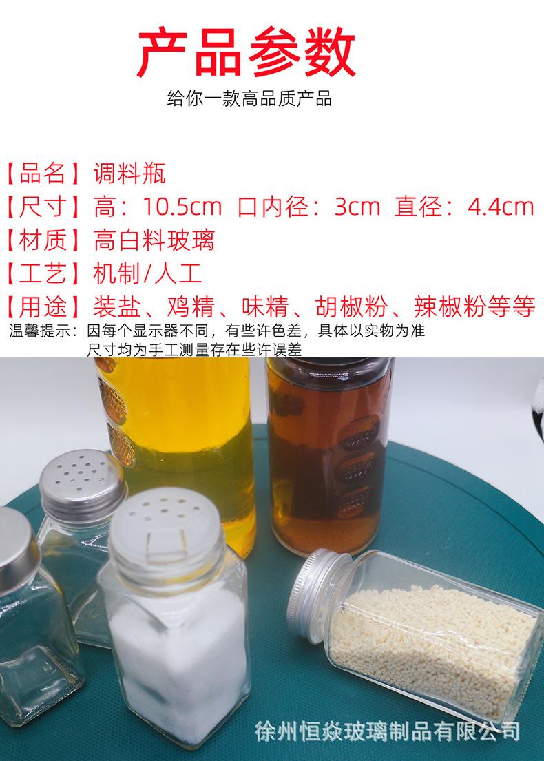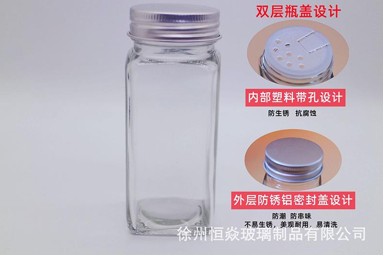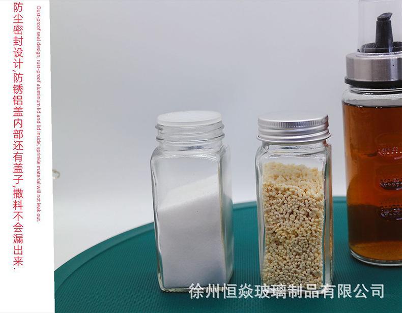 Venta al por mayor de cocina para el hogar de vidrio cuadrado botella para condimentos tarro para condimentos comino chile botella espolvoreadora a prueba de humedad sellada