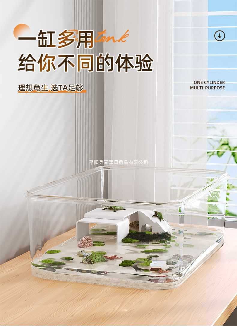 Acuario pequeño altamente transparente, tanque de cría de tortugas, tanque transparente de imitación de vidrio, sala de estar en casa, paisajismo visual, acuario ecológico para peces dorados