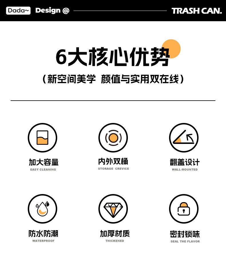 Bote de Basura Doméstico de Alto Valor Gran Capacidad Cocina Sellado Tapa Deslizante Doble Contenedor Sin Agacharse Bote de Basura Engrosado