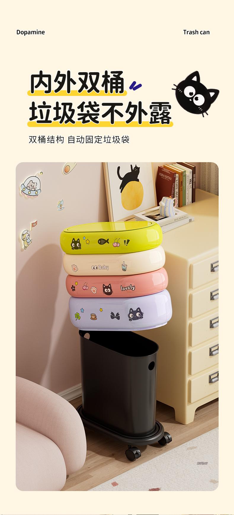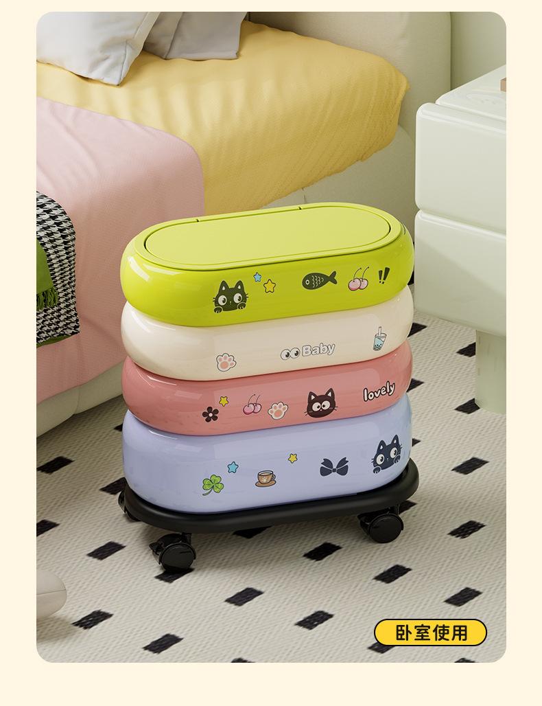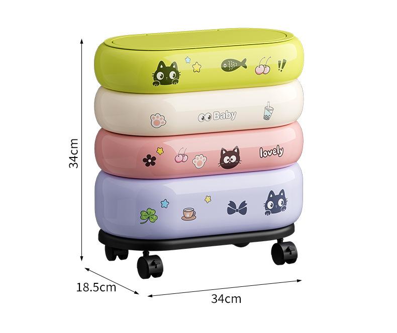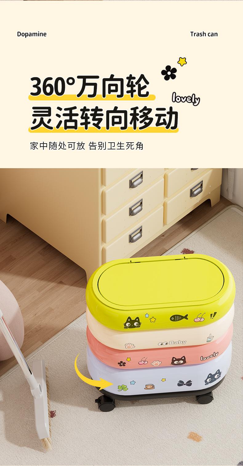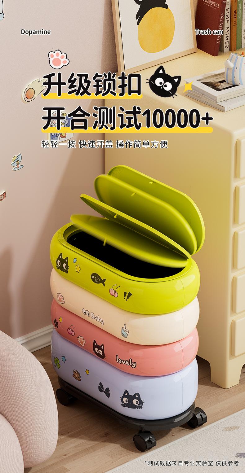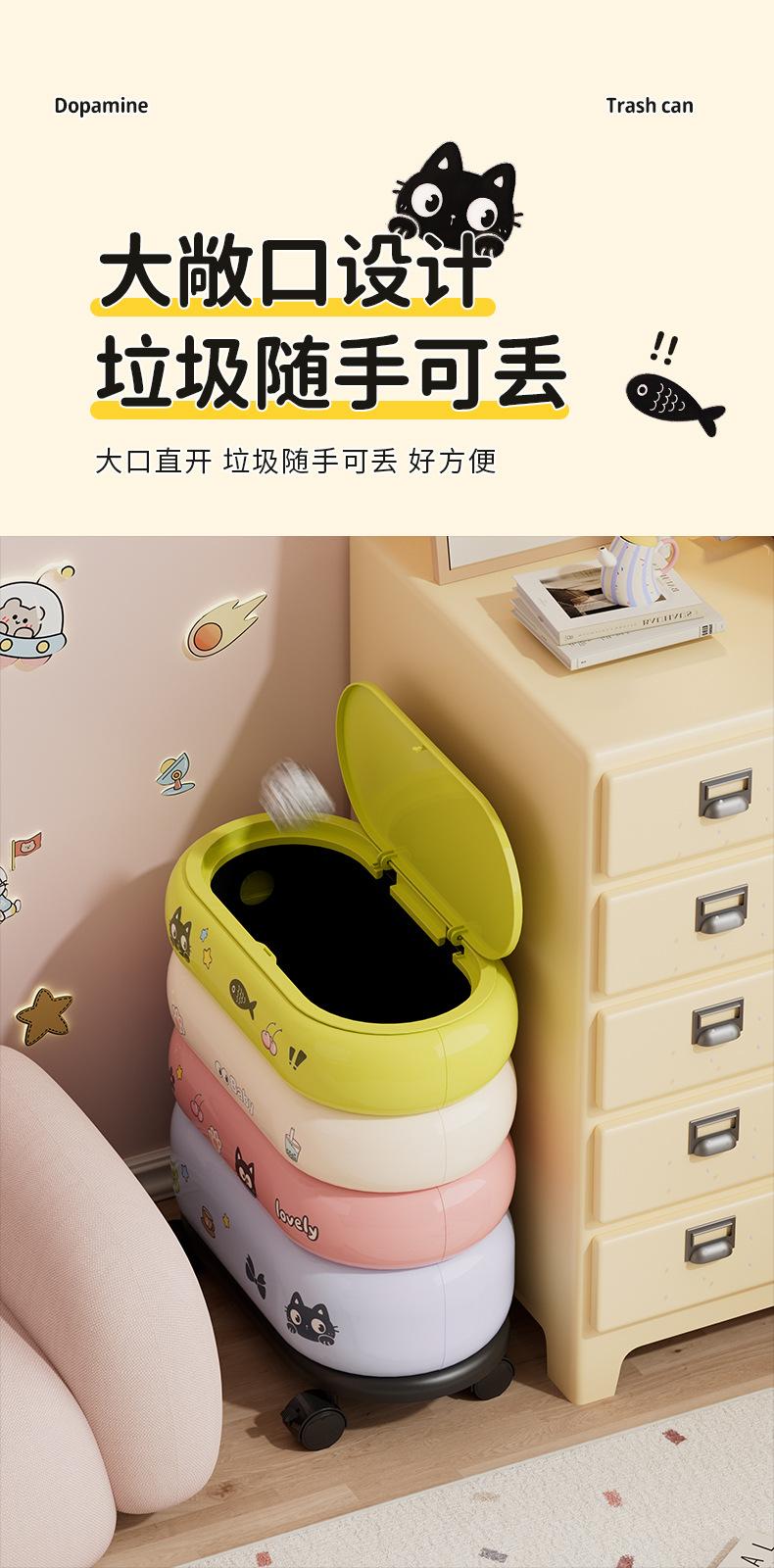 Bote de Basura Doméstico de Gran Capacidad con Ruedas Movible Dopamina de Dibujos Animados Cubo de Almacenamiento Dormitorio Sala de Estar con Tapa Cesto de Basura