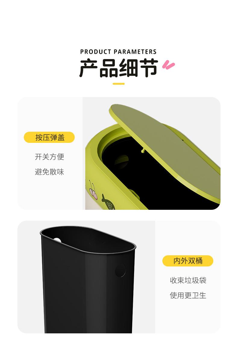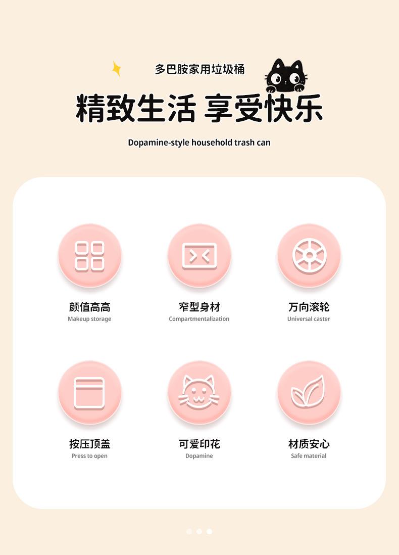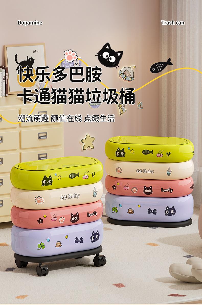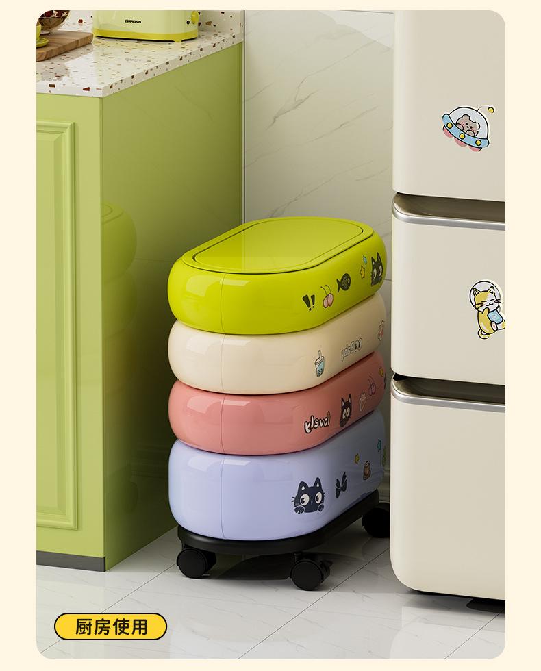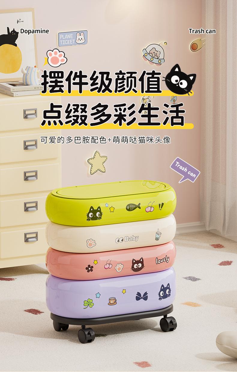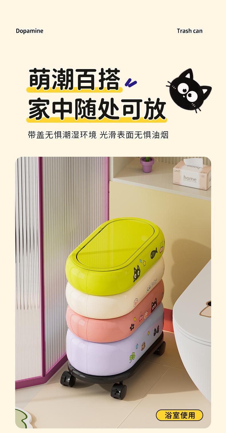 Bote de Basura Doméstico de Gran Capacidad con Ruedas Movible Dopamina de Dibujos Animados Cubo de Almacenamiento Dormitorio Sala de Estar con Tapa Cesto de Basura