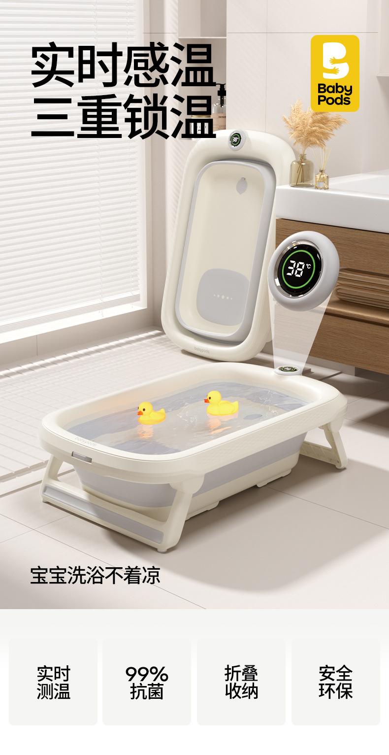 [Intelligent temperature sensing] antibacterial tub bath net folding basin * 3