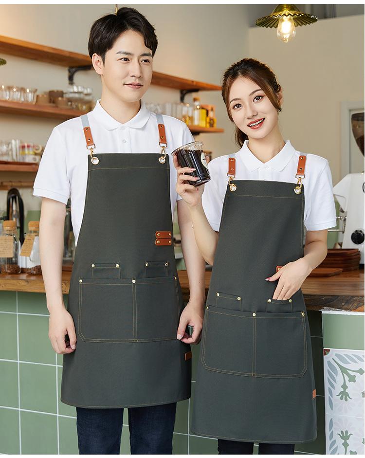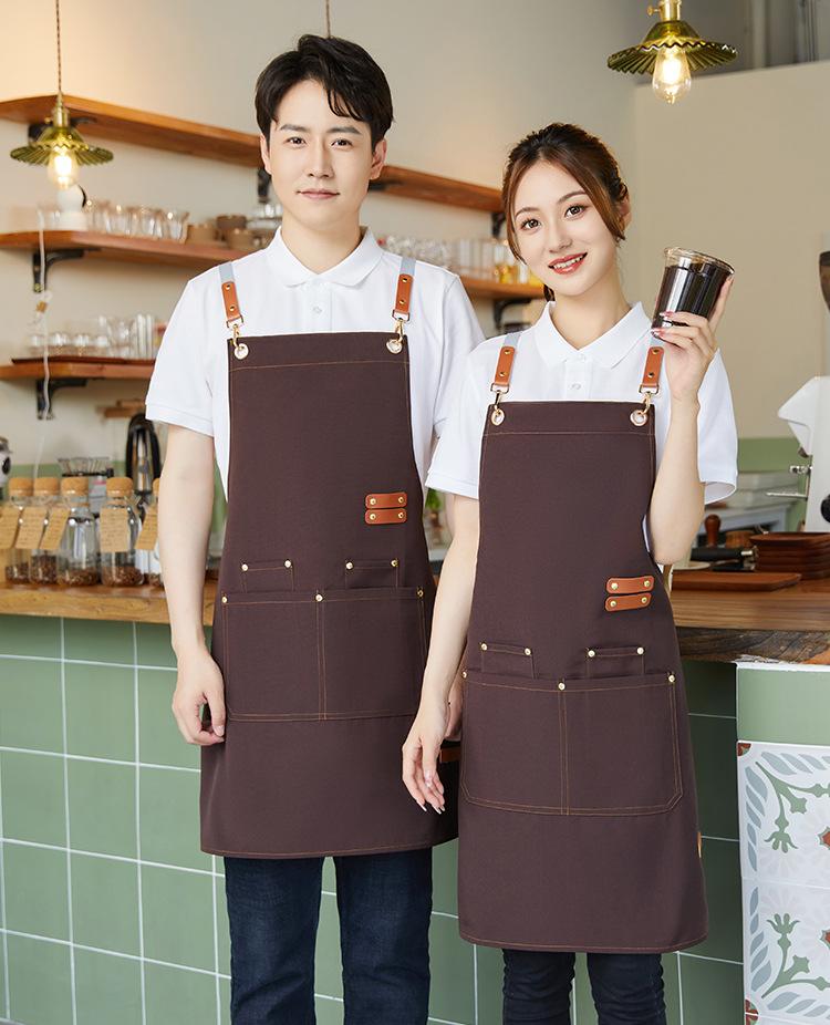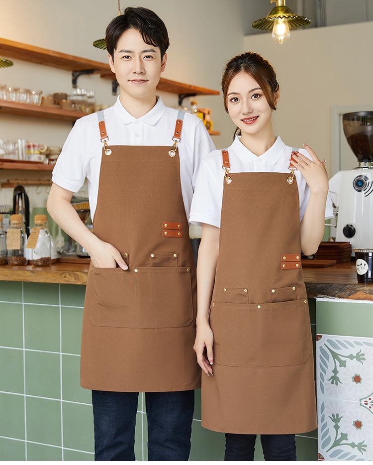 XS-Three-Button Canvas Waterproof Apron Coffee