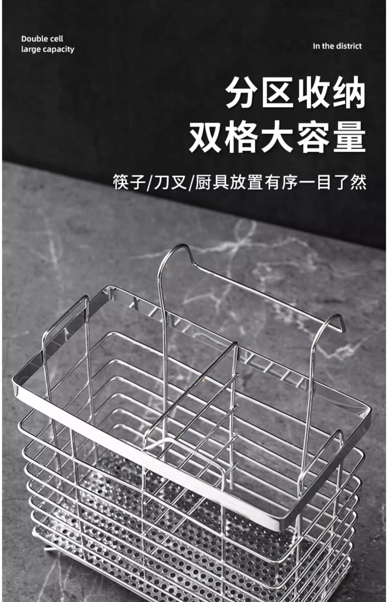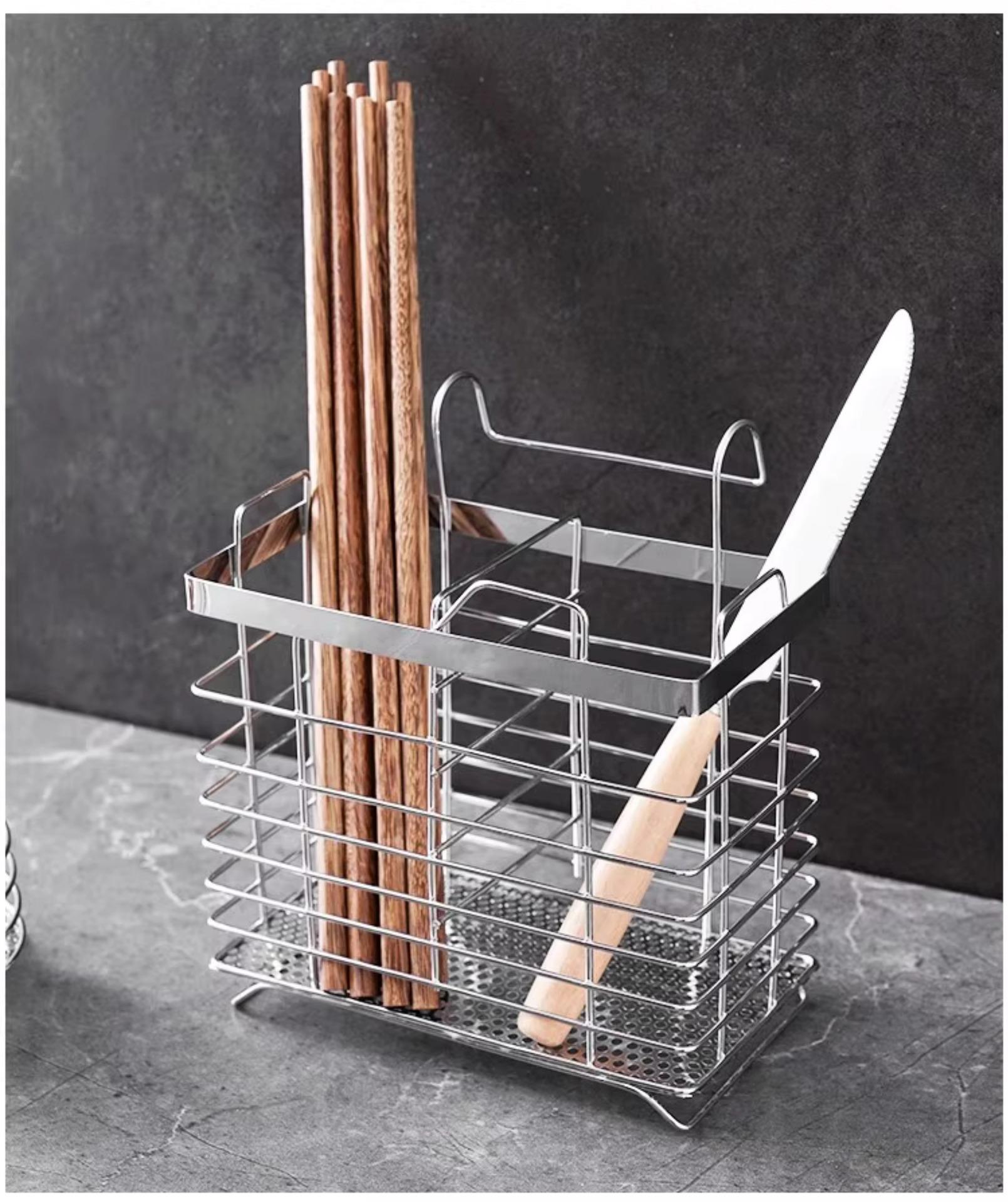 Thickened Square Double Compartment [Stainless Steel Chopstick Holder]
