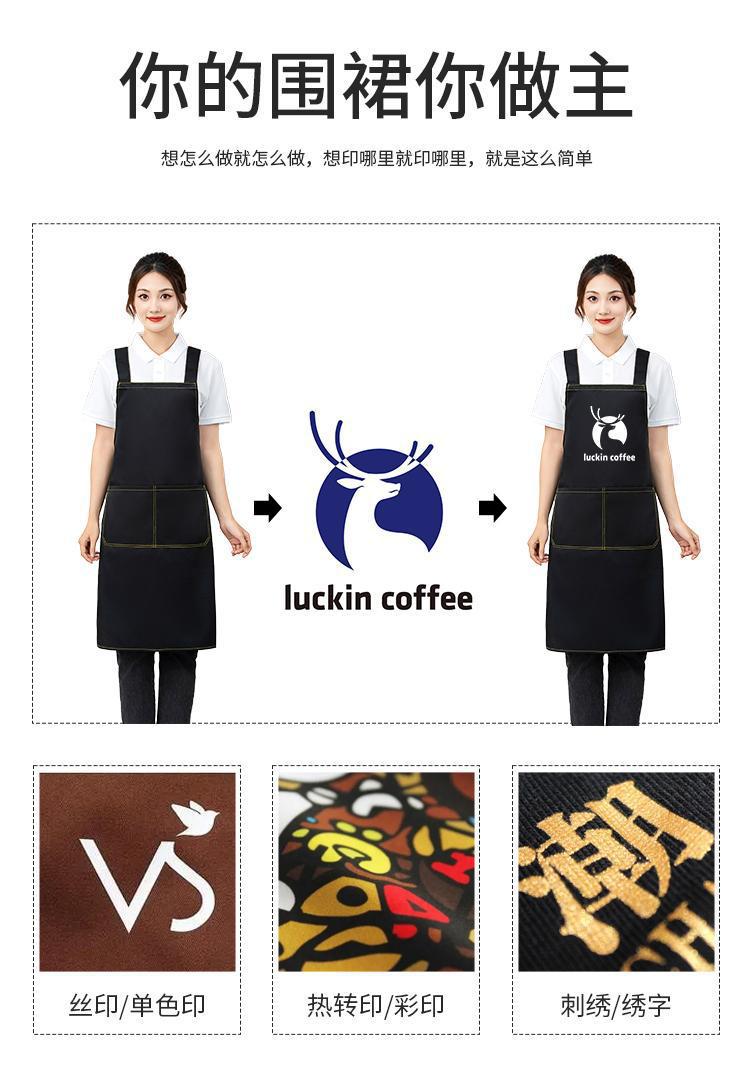 Ropa de trabajo nueva transfronteriza de color sólido impermeable y a prueba de aceite, ensanchada y con peto añadido para hostelería, publicidad, impresión de logotipo personalizado