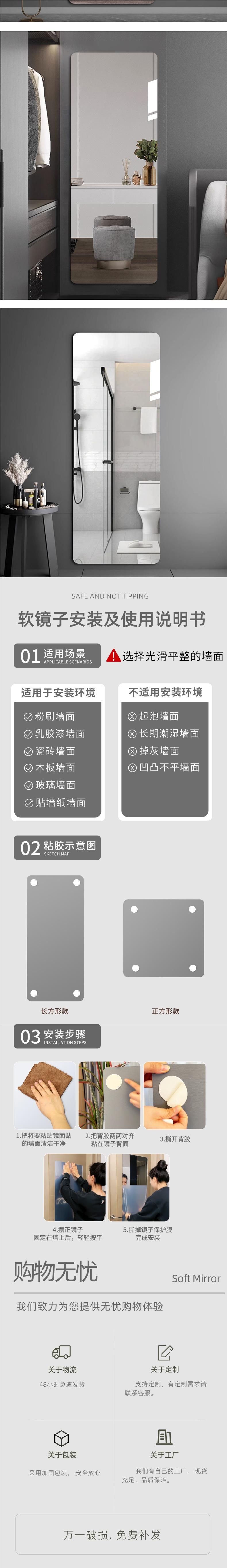 Espejo de pared suave autoadhesivo para baño, espejo acrílico de cuerpo entero para el hogar, espejo de maquillaje para lavado de cara, HD, sin perforaciones
