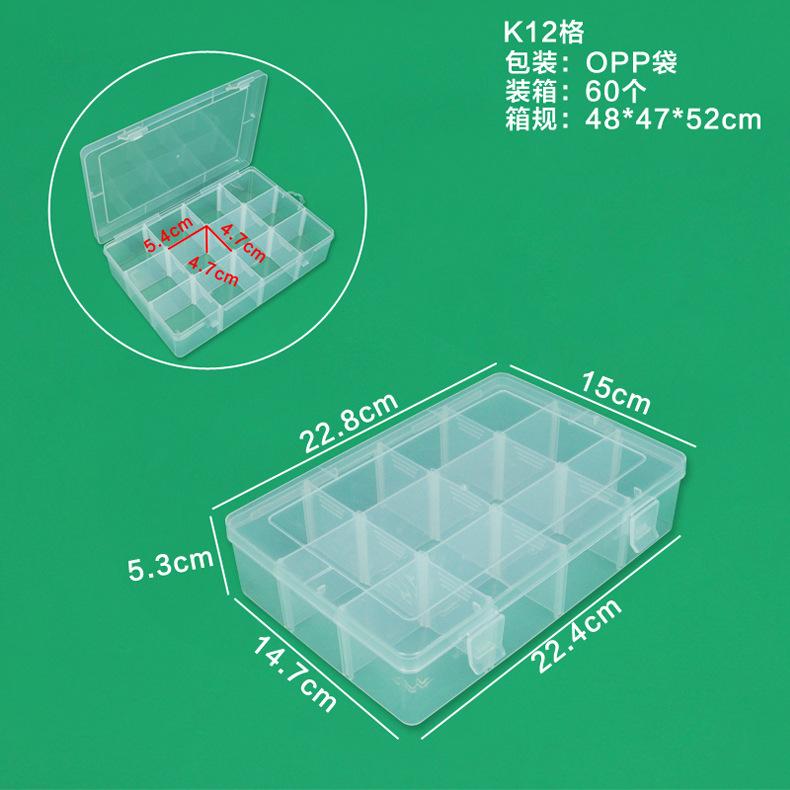 Caja de almacenamiento extraíble de 12 compartimentos, caja de plástico PP transparente, caja para accesorios de joyería, organizador de herramientas, caja de embalaje, caja de exhibición de muestras