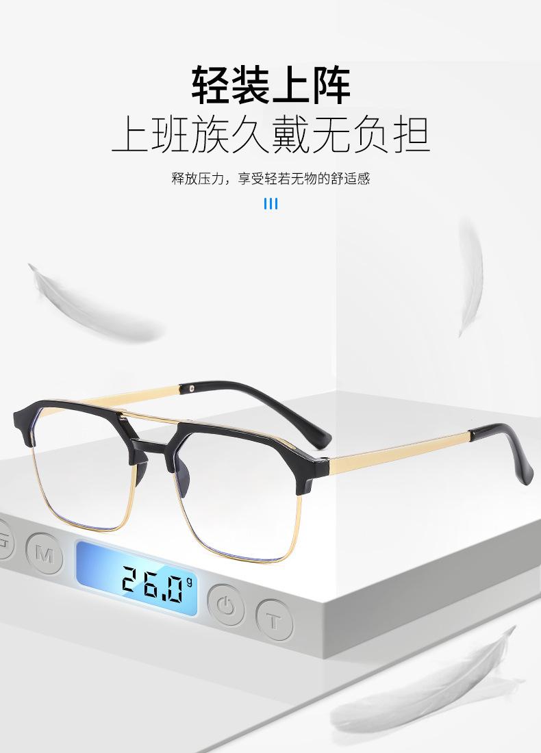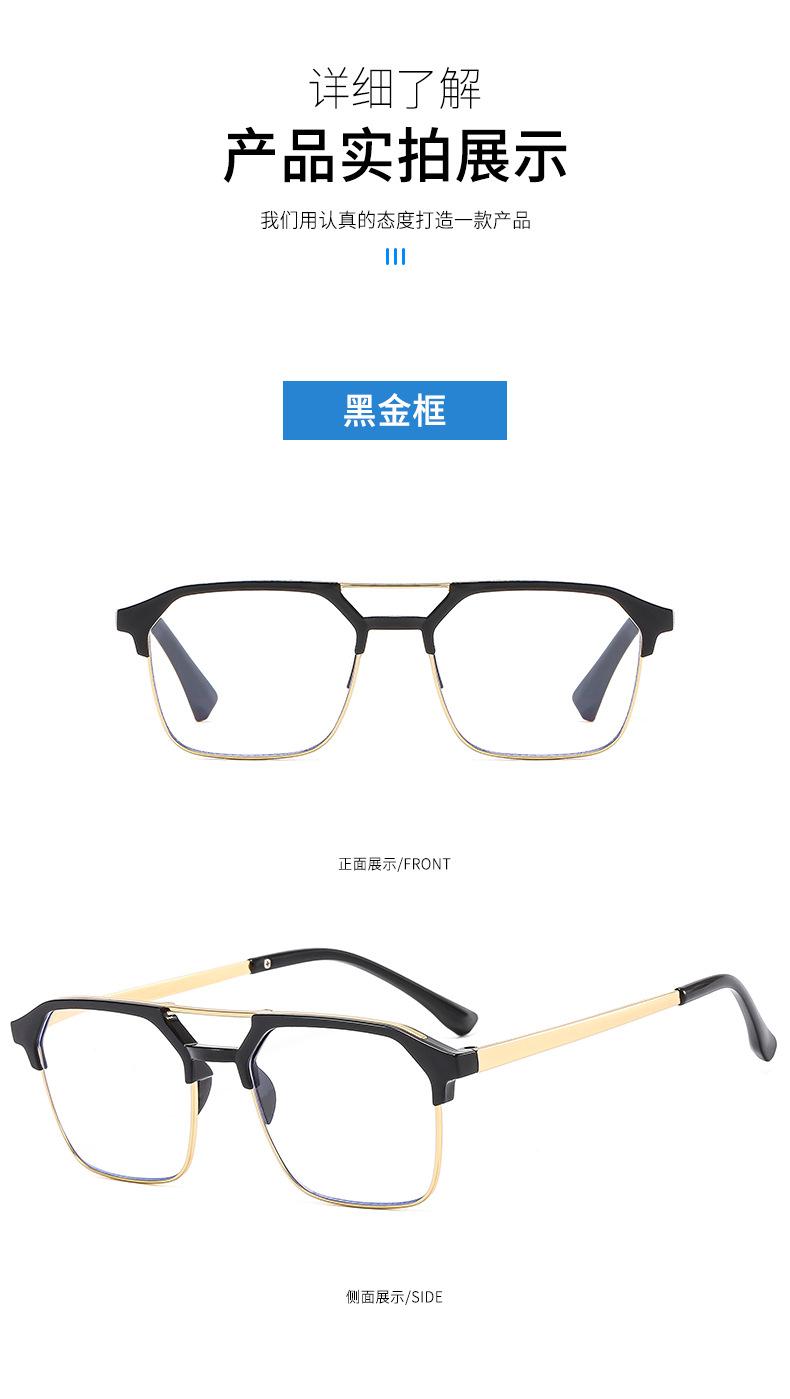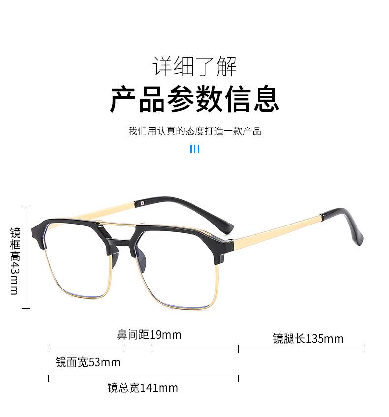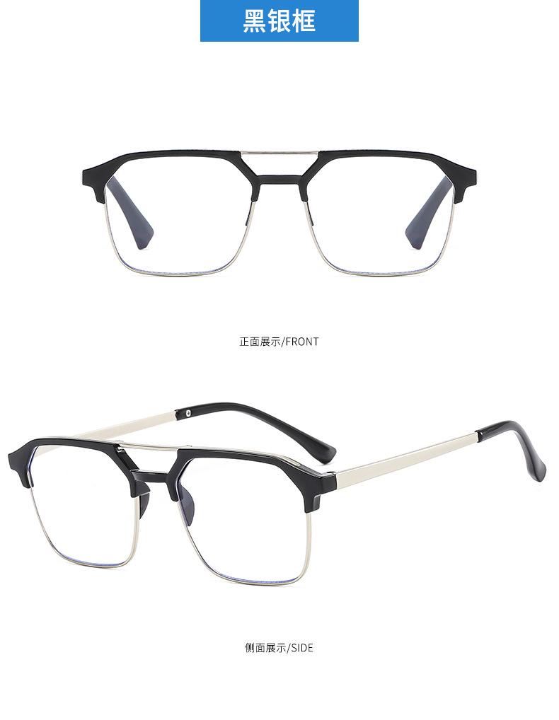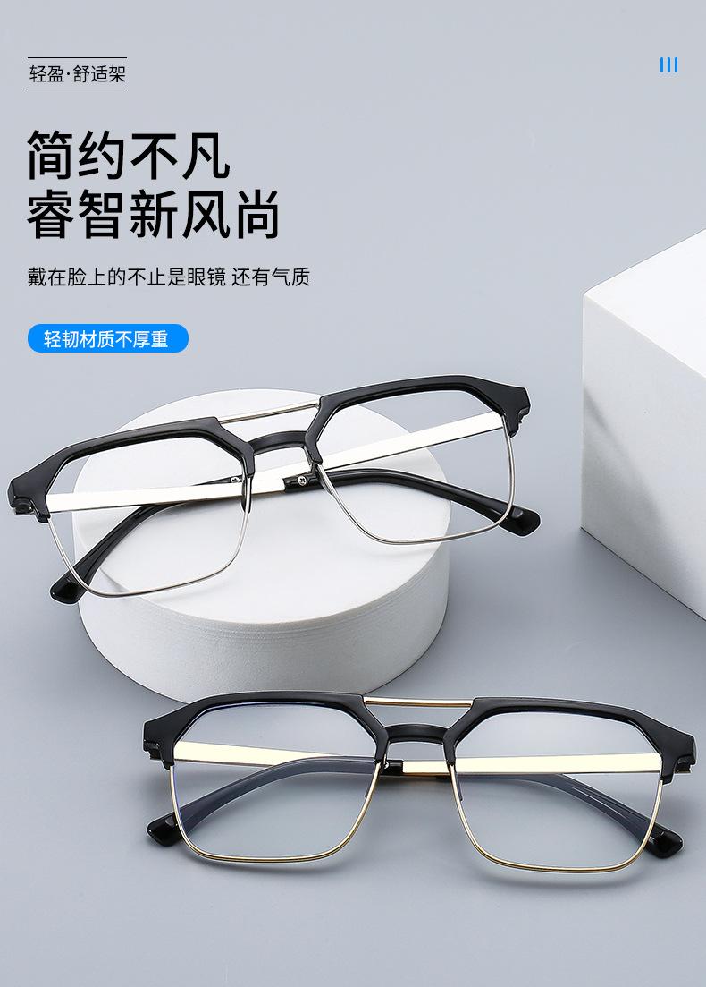 Gafas de Negocios de Media Montura con Montura Cuadrada de Doble Barra para Hombre, Gafas de Miopía de Moda de Montura Grande, Gafas de Lectura de Gama Alta con Lentes Planas Antiluz Azul