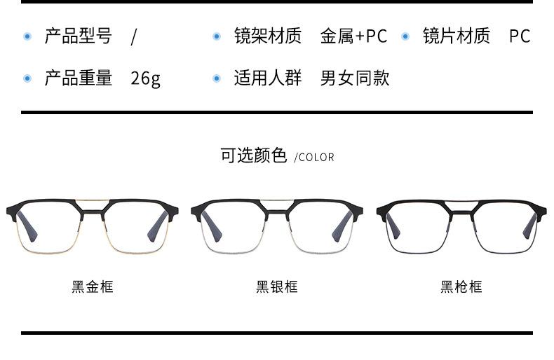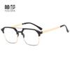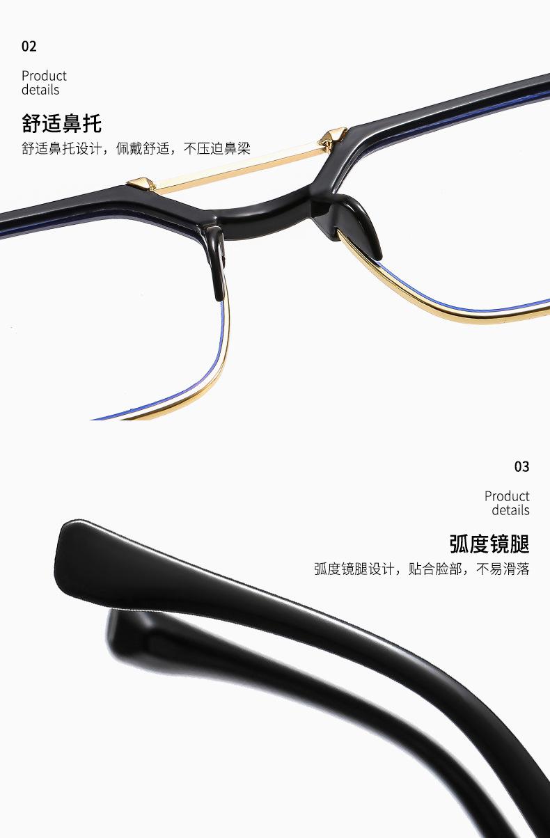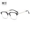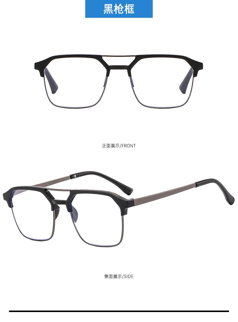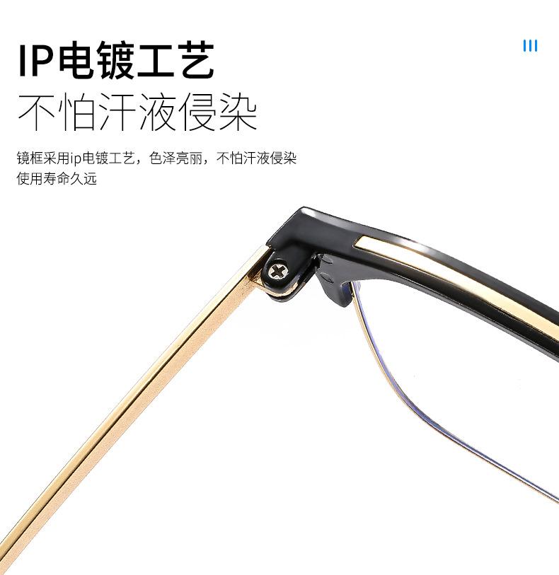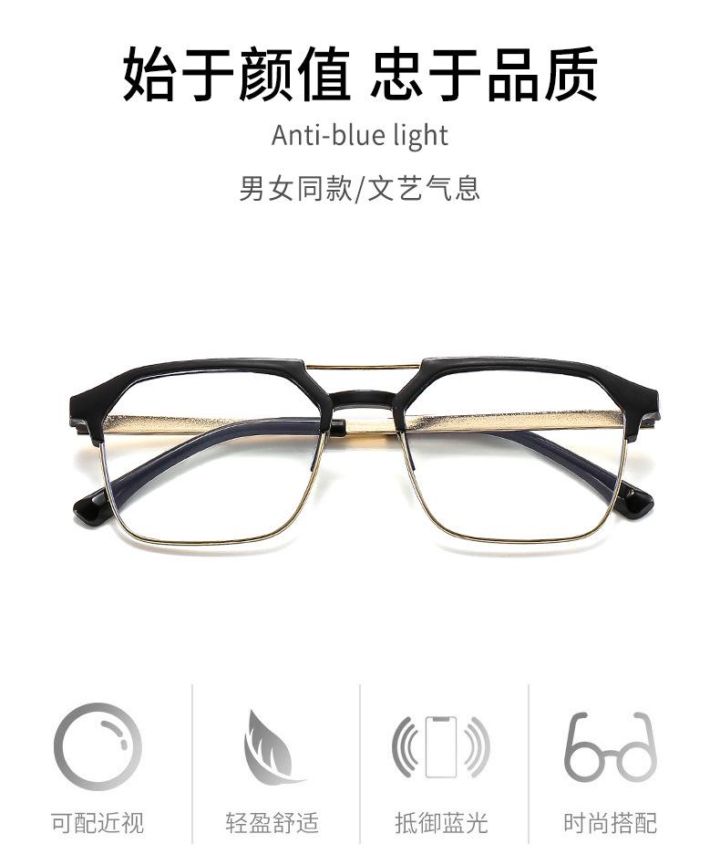 Gafas de Negocios de Media Montura con Montura Cuadrada de Doble Barra para Hombre, Gafas de Miopía de Moda de Montura Grande, Gafas de Lectura de Gama Alta con Lentes Planas Antiluz Azul