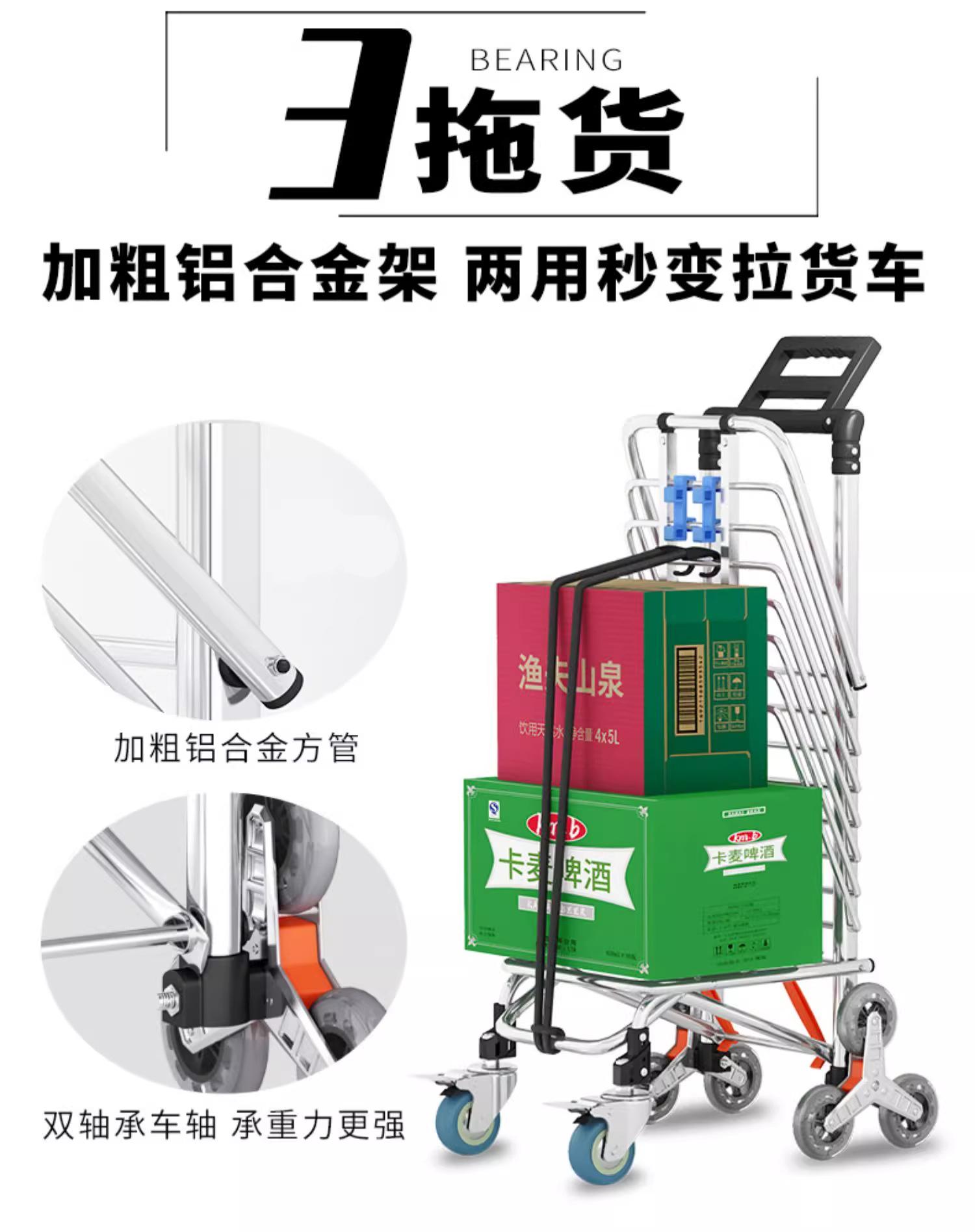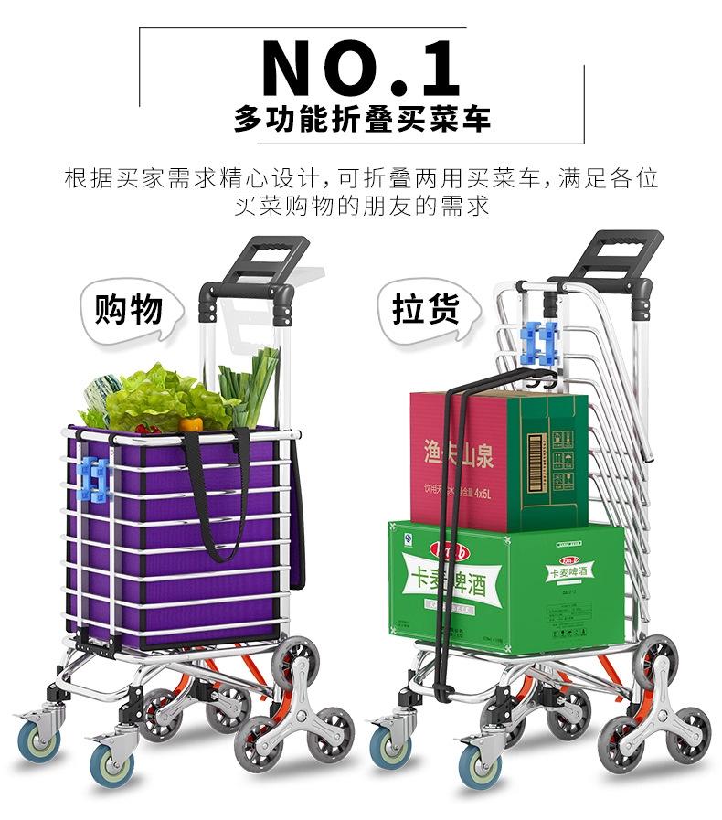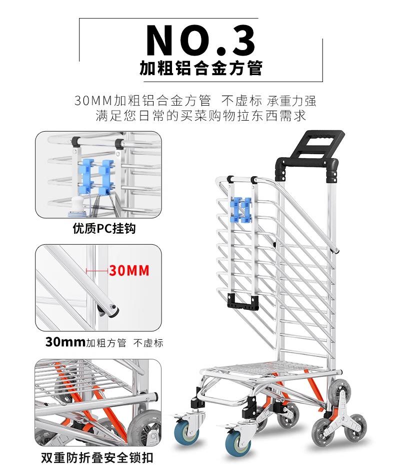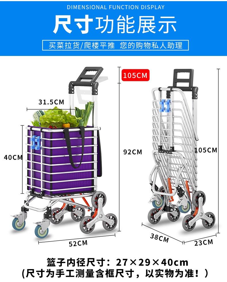 Carrito de compras portátil para subir escaleras, carrito pequeño de arrastre, remolque doméstico plegable y ligero de mano, carrito para personas mayores