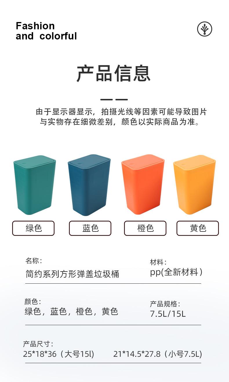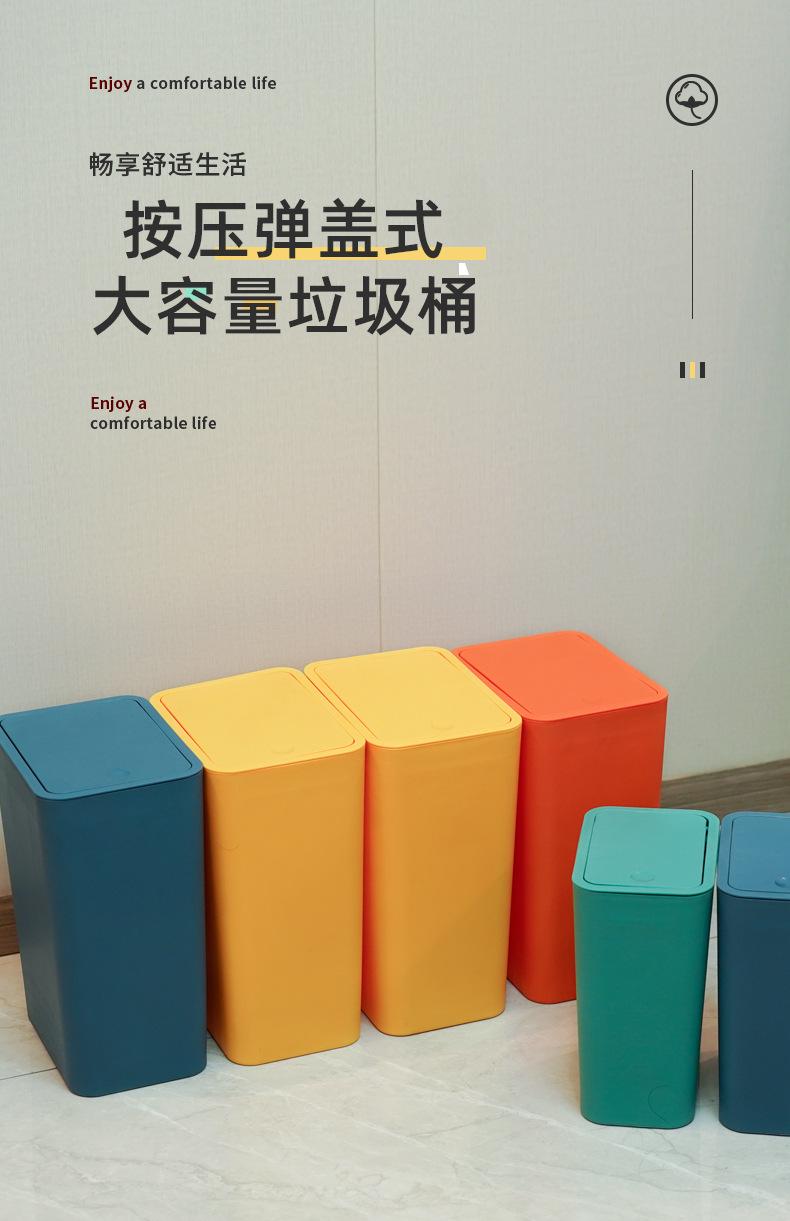 Bote de basura minimalista de alto valor con tapa de presión para abrir, cocina, dormitorio, baño, sala de estar, bote de basura doméstico para interiores con tapa