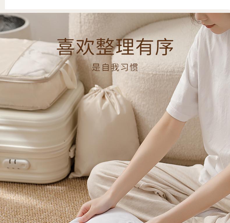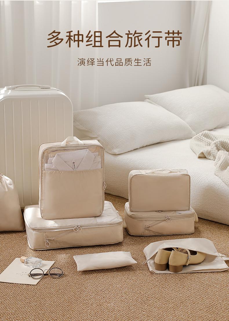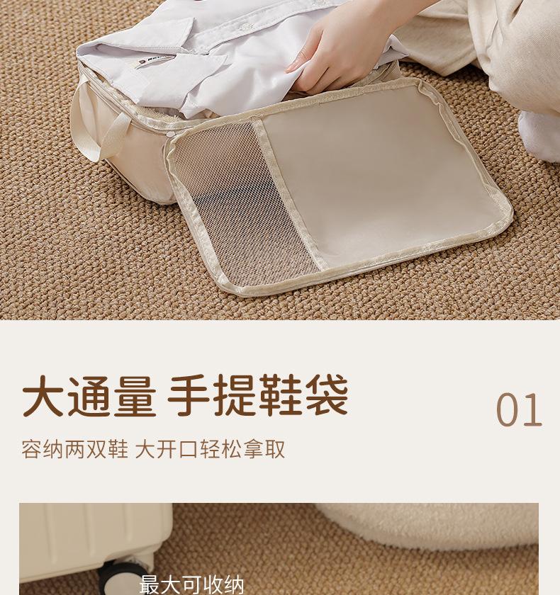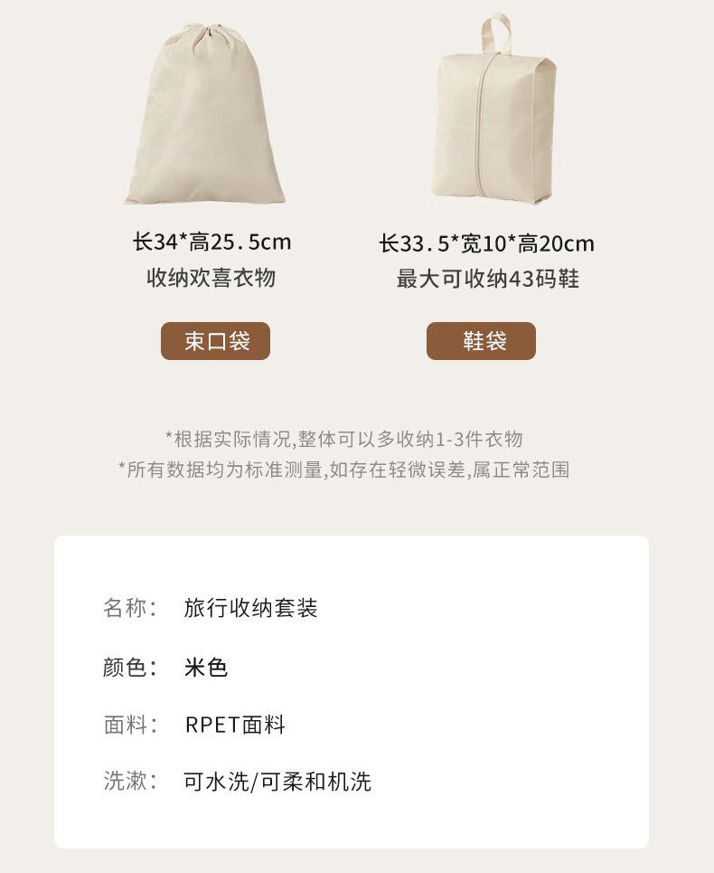 Flat pocket 1 pack 25.5*16cm, Drawstring pocket 1 pack 34*25.5cm, Shoe bag 1 pack 33.5*20*10cm beige, Underwea...