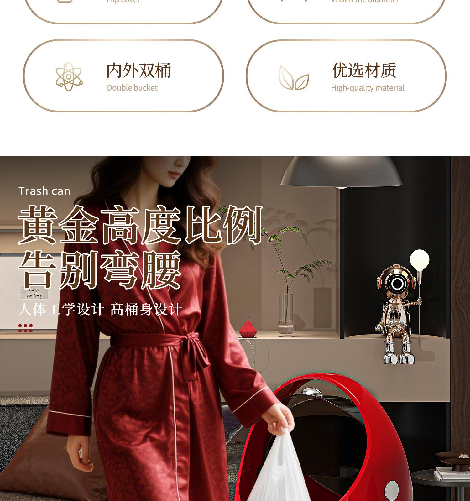 Bote de Basura Creativo para el Hogar de Plástico de Alta Gama para Dormitorio Sala de Estar con Tapa Cesto para Papel de Desecho de Gran Capacidad Lujo Ligero Bote de Basura con Tapa Abatible