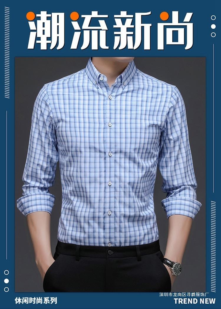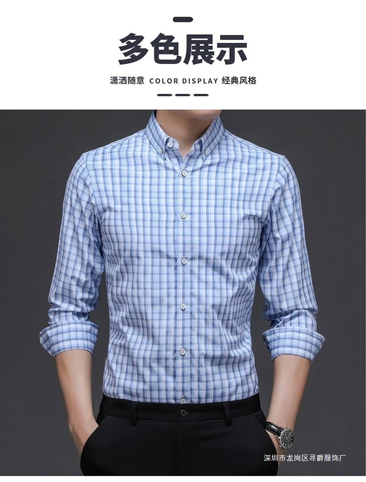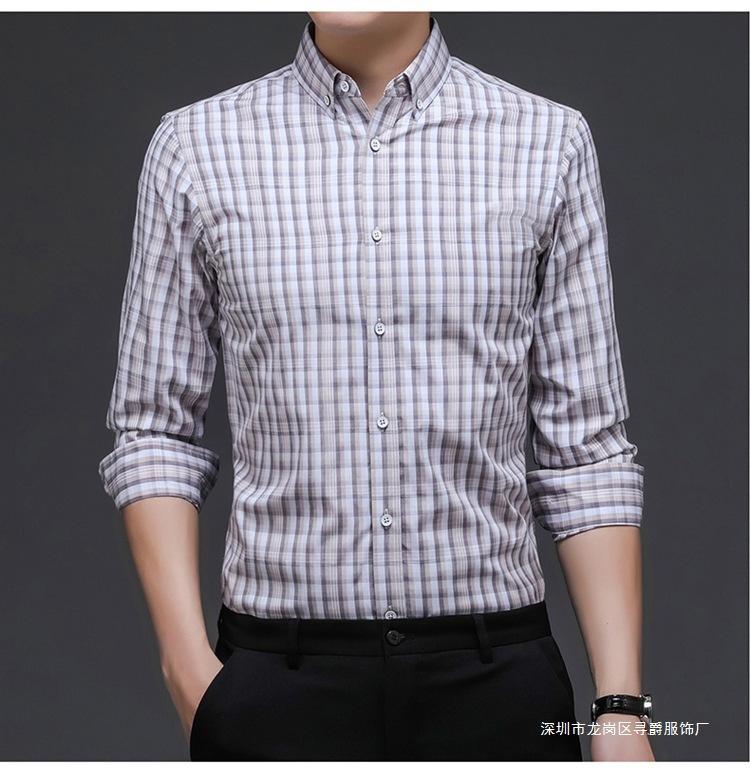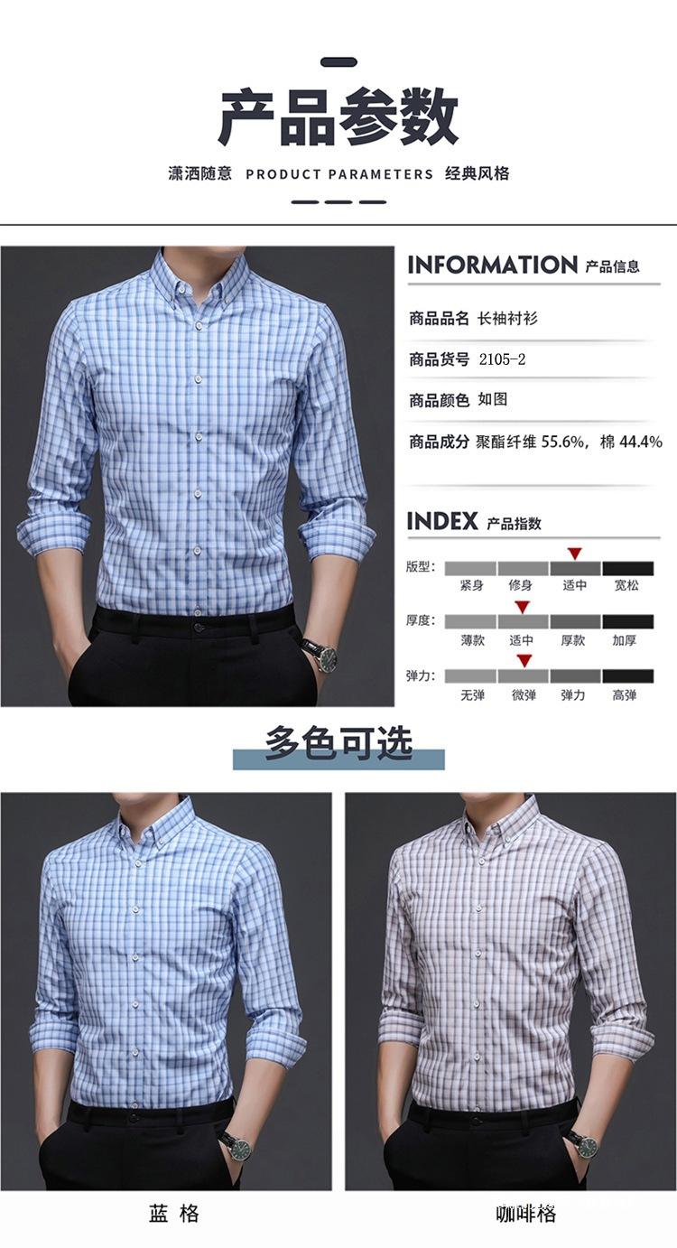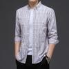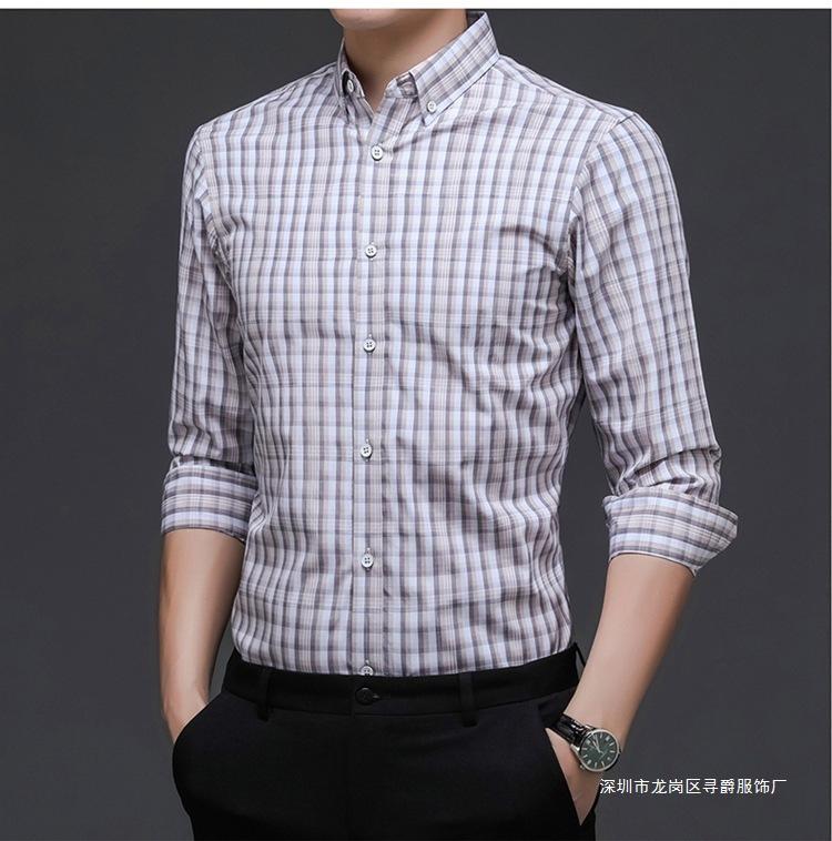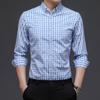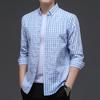 Marca 2025 Primavera Nueva Camisa de Manga Larga Elástica Hombre Delgada Cuadros Business Casual Slim-Fit Hombre Algodón