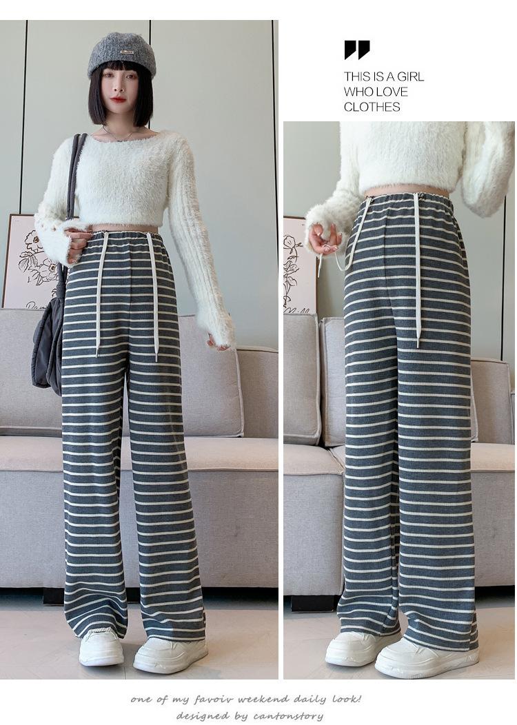 Pantalones de Maternidad Otoño Invierno 2025 Nuevo Estilo Sin Soporte para el Vientre Acanalados de Pierna Ancha Casual Adelgazantes Ropa Exterior Pantalones Sueltos hasta el Piso Ropa de Otoño