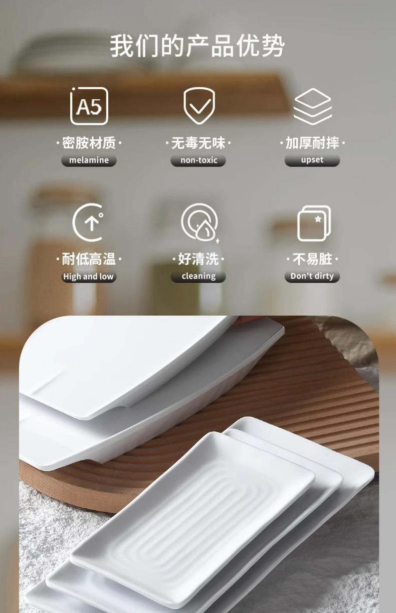 Plato de Melamina Comercial Restaurante Hot Pot Plato de Mesa Rectangular Barbacoa Plato de Barbacoa Plato Creativo para Sushi