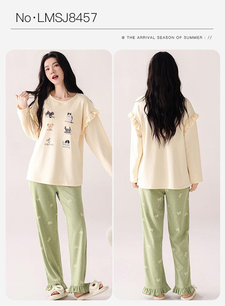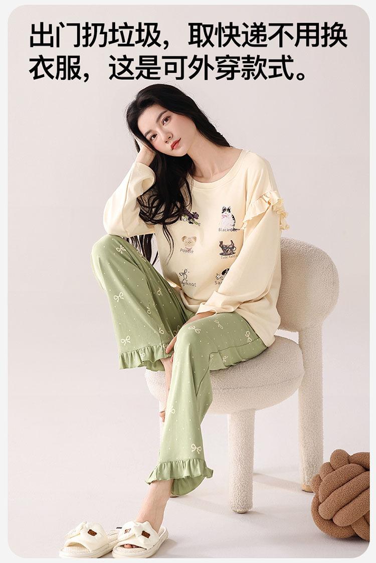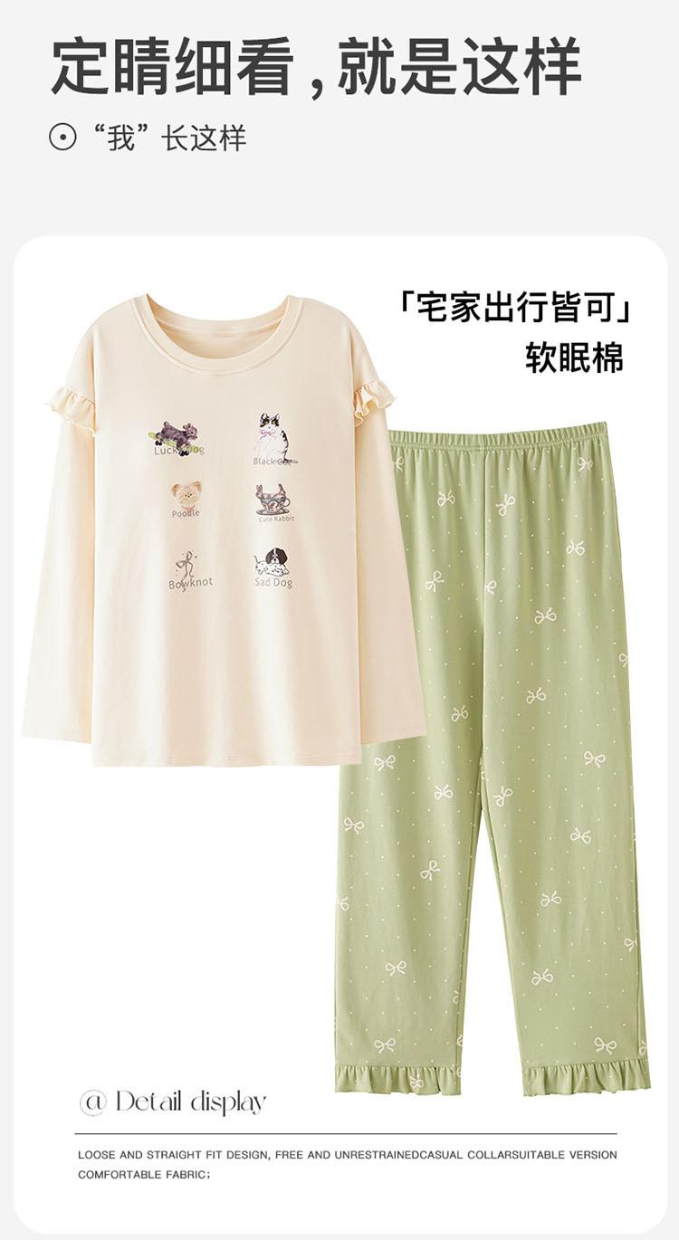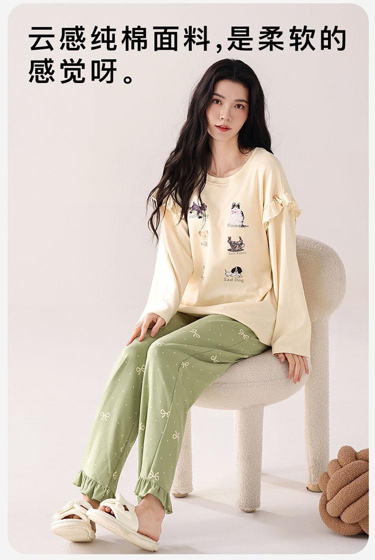 Compra Pijamas Dulces de Estudiante Primavera y Otoño Nuevos Algodón Puro Manga Larga Ropa para el Hogar con Almohadillas en el Pecho Que se Pueden Usar Afuera Trajes Delgados de Invierno al por mayor en Joom.pro