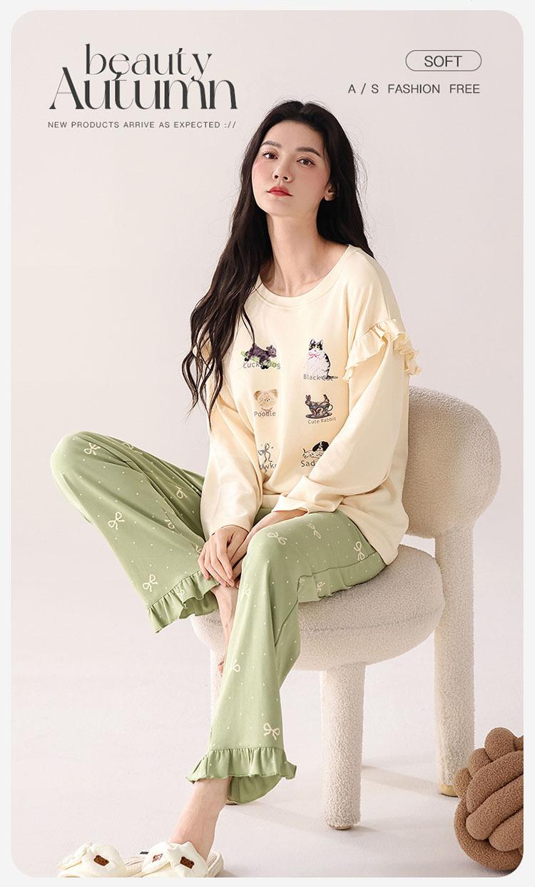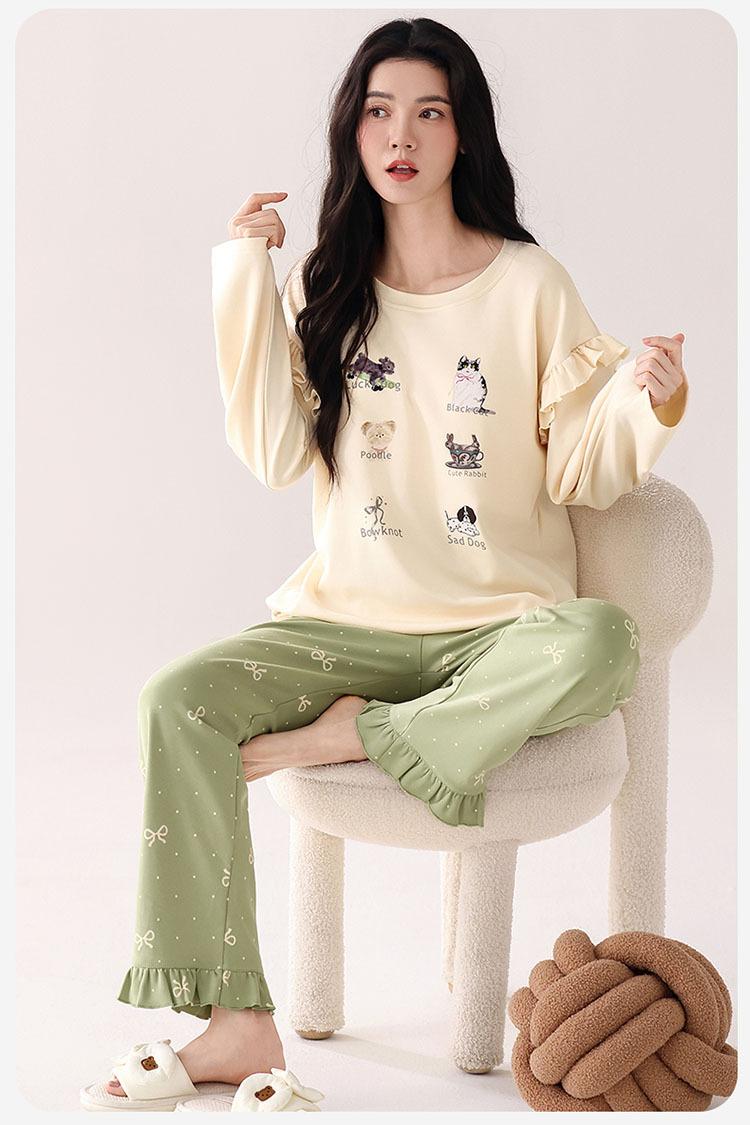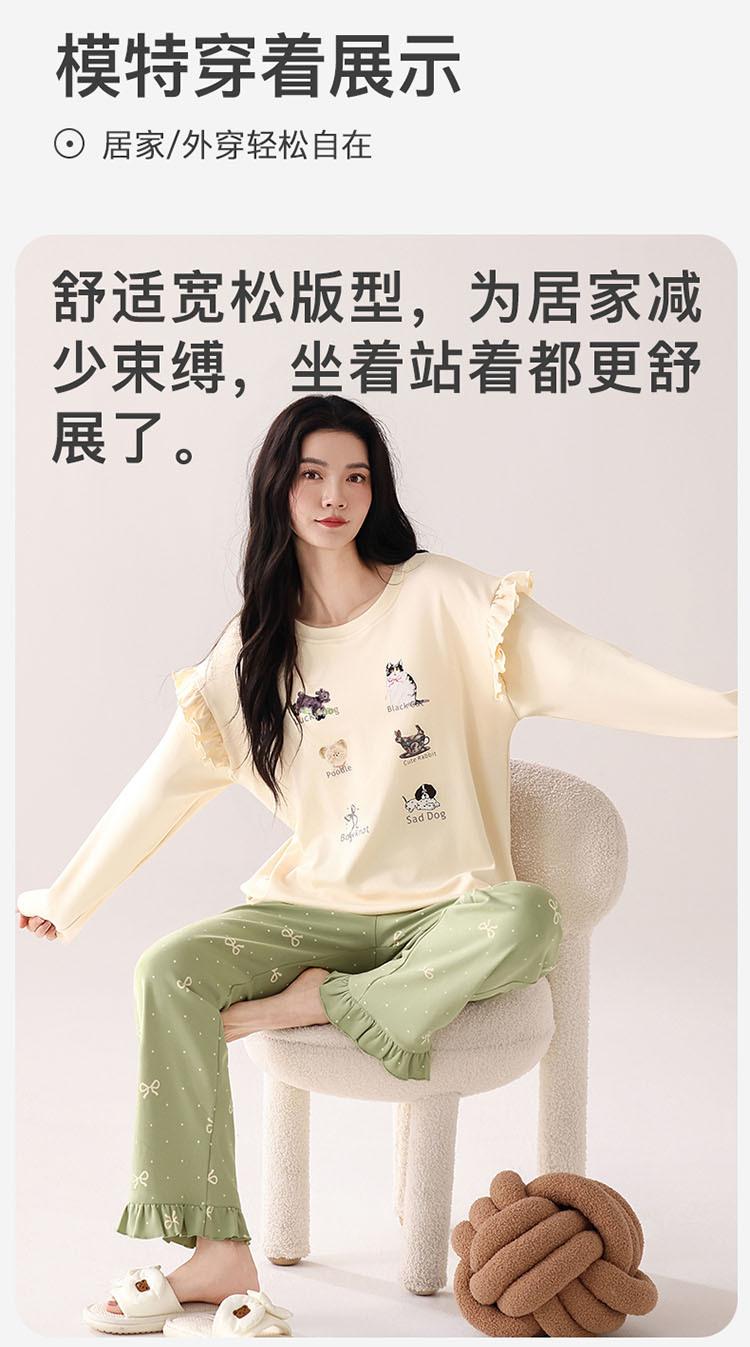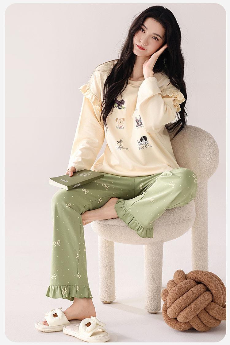 Compra Pijamas Dulces de Estudiante Primavera y Otoño Nuevos Algodón Puro Manga Larga Ropa para el Hogar con Almohadillas en el Pecho Que se Pueden Usar Afuera Trajes Delgados de Invierno al por mayor en Joom.pro